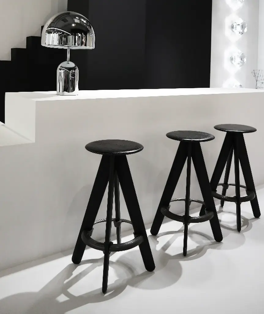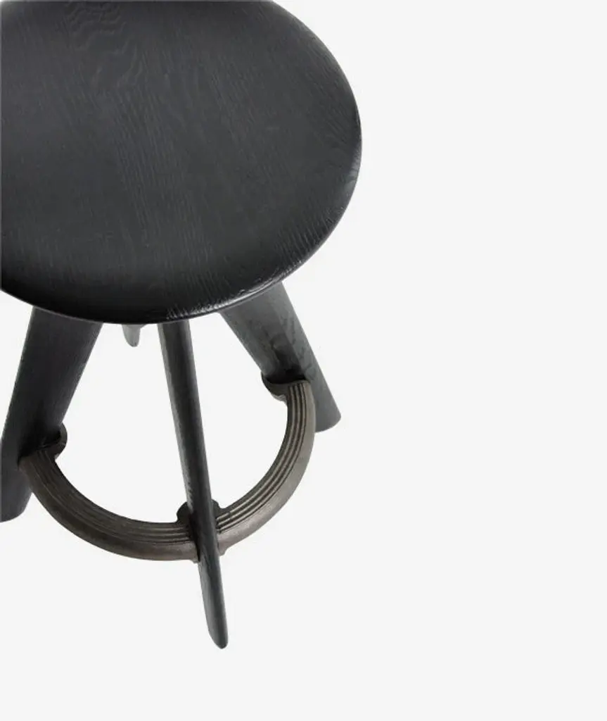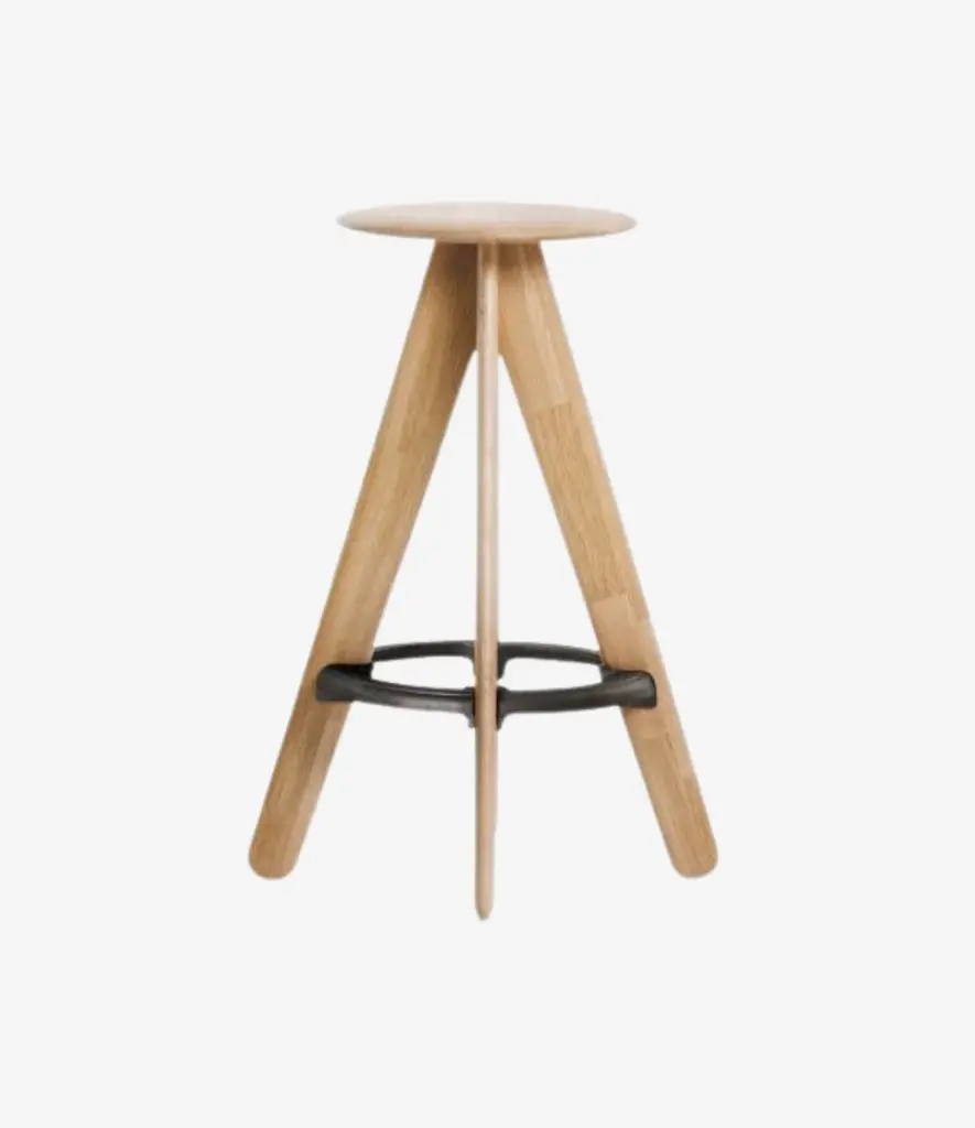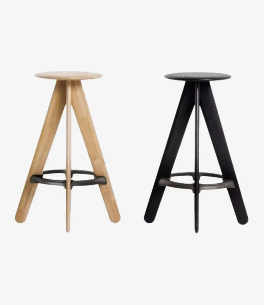 Celebrating the natural beauty of oak, Slab Bar Stool is a robust piece constructed in angular forms of inviting simplicity. The surface is deeply brushed to expose the grain of the natural oak. The Slab Bar Stool comes with a cast iron foot ring and is available in natural or in a black lacquered finish. The collection includes a dining chair and table.