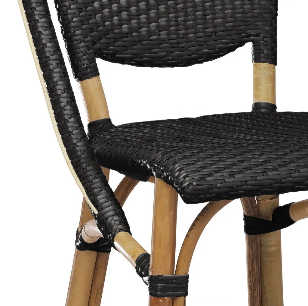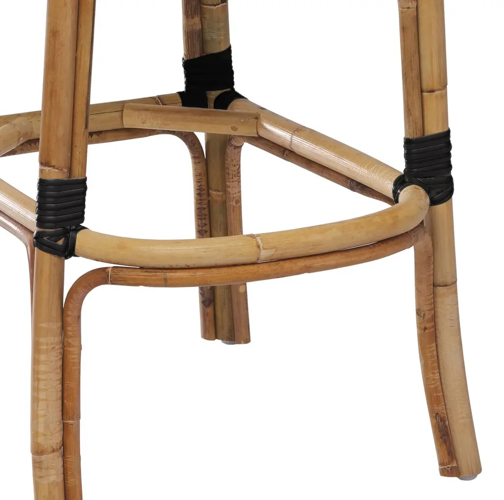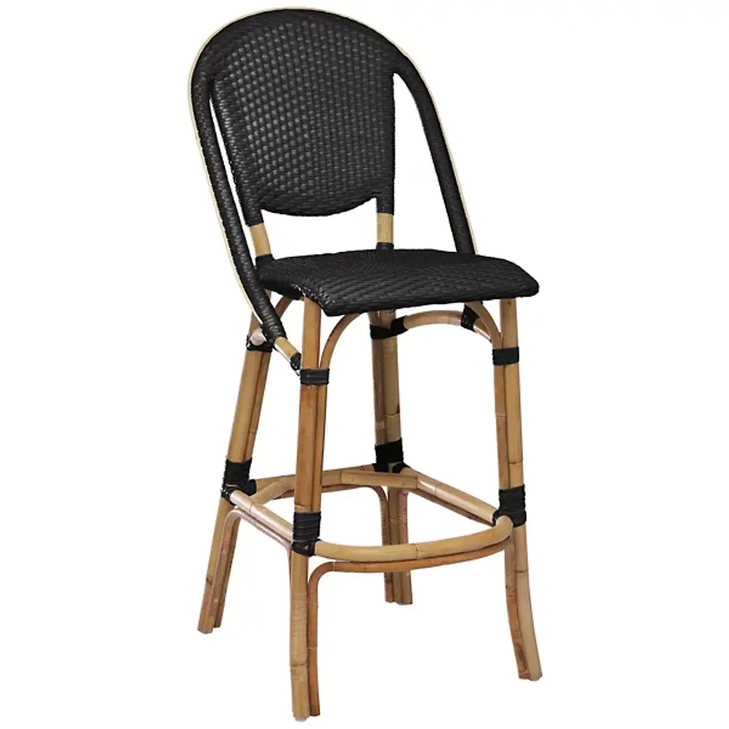 The Sofie Barstool by Sika Design showcases an elegant style with an all-natural rattan frame and polyethylene bindings. Inspired by Parisian bistro dining stools, these handmade stools feature swooping arms, waterfall front seats, and solid reinforced footrests for long-lasting seating comfort. The handcrafted frame is solid Malacca cane rattan with a woven ArtFibre™ back and seat. This exclusive polyethylene material is comfortable and made to stand up to daily use. Designed for indoor use, these stackable stools are virtually maintenance-free, perfect for bar or counter seating in a home or commercial setting.