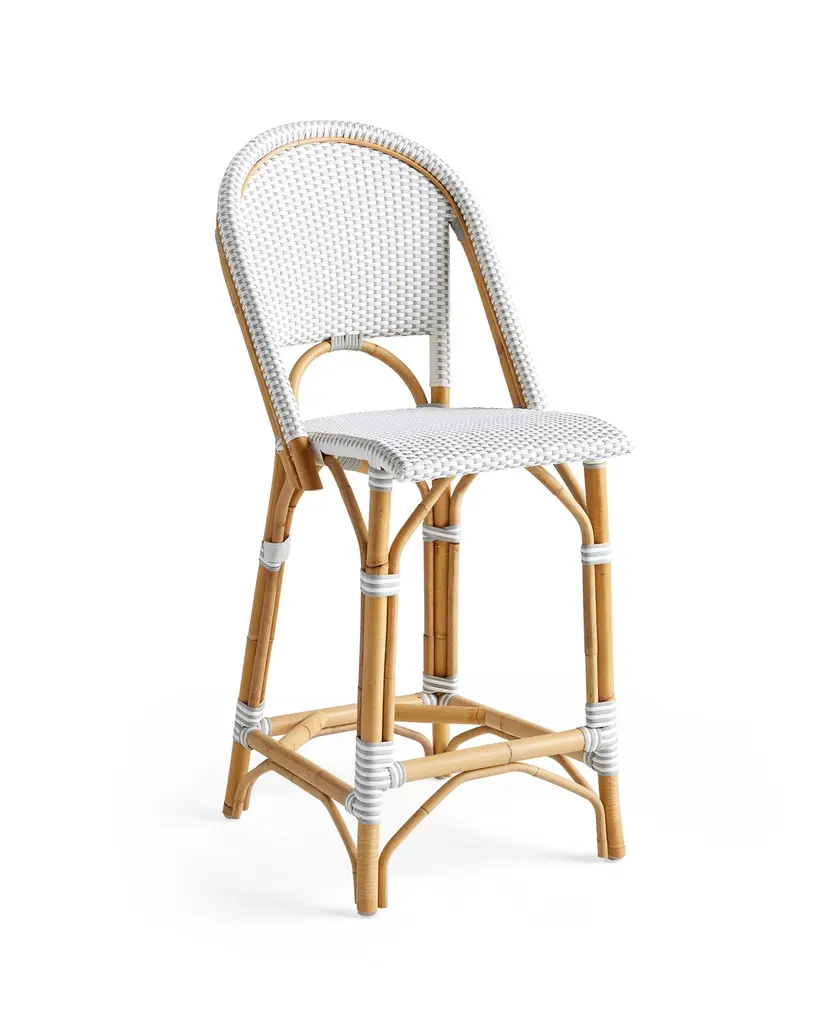 A modern version of a classic French bistro chair, this barstool is handcrafted by artisans using centuries-old Danish methods. A sturdy rattan frame is wrapped in ArtFibre--an easy-to-clean, weatherproof cord--and finished with woven reinforcements. Suitable for indoor use only.