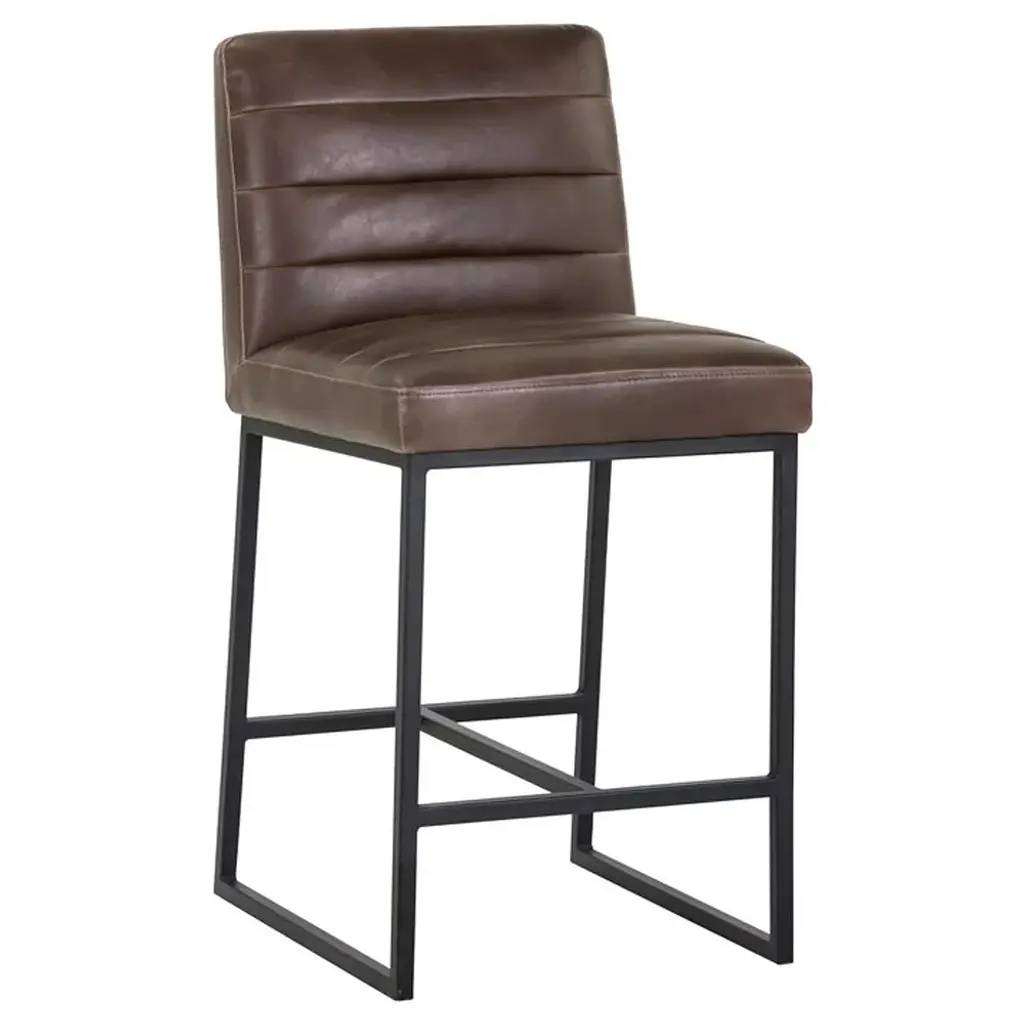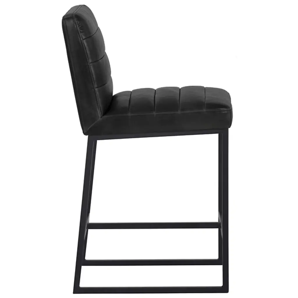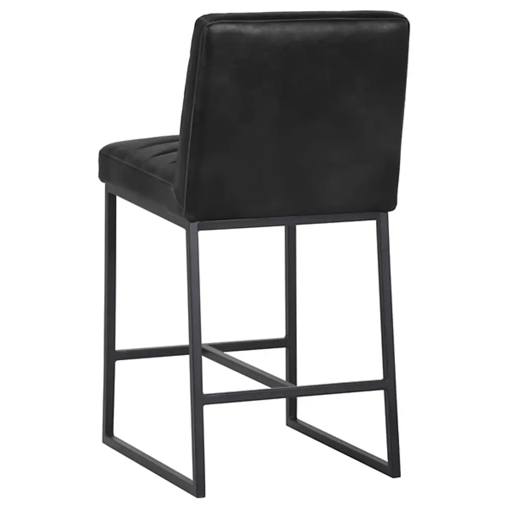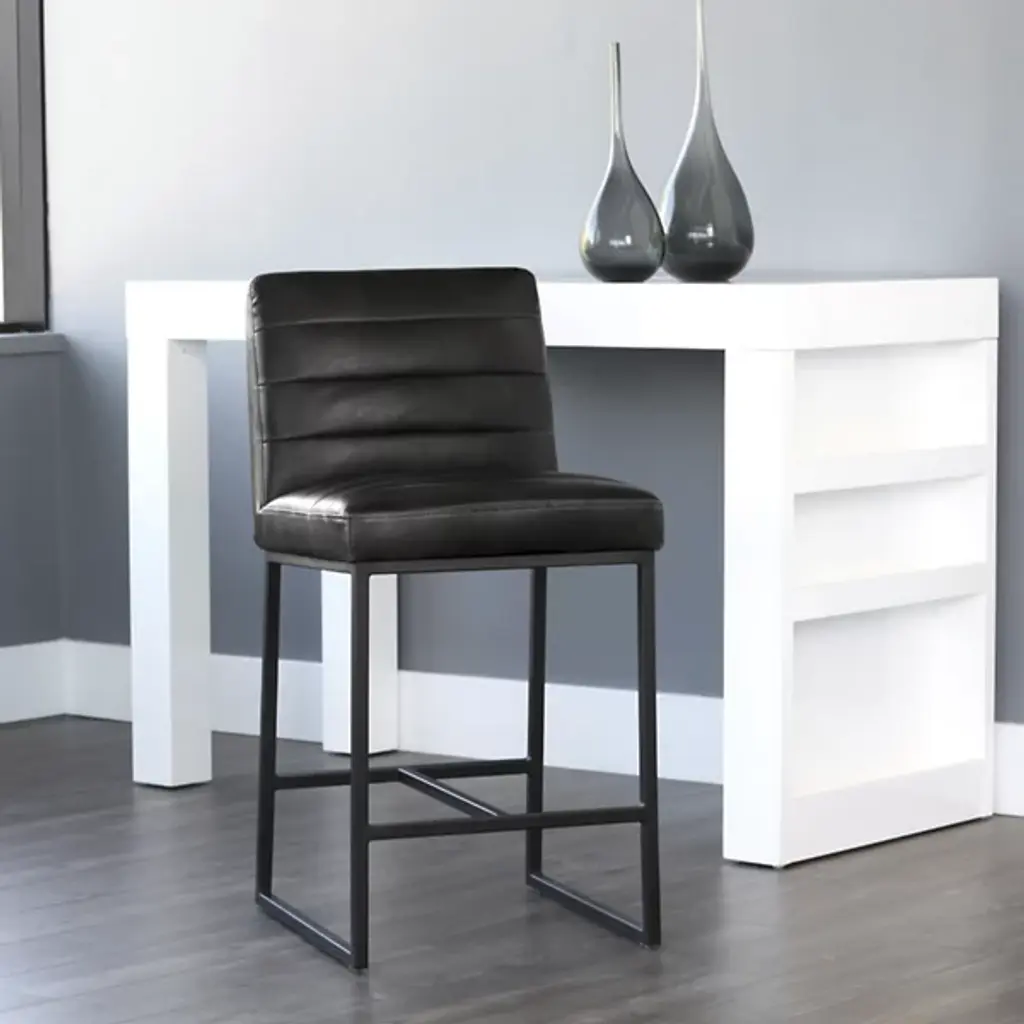 The Spyros Counter / Bar Stool from Sunpan brings retro detail to elevated seating. Elegant horizontal channel tufting adorns the seat surface and back, wrapped in faux leather that develops subtle character variations over time. The black powder-coated steel frame provides a contemporary foundation, while a high-resilience foam fill offers plush reinforcement and ensures lasting comfort. This versatile seat enhances any dining, kitchen, or bar space with a refined modern style.