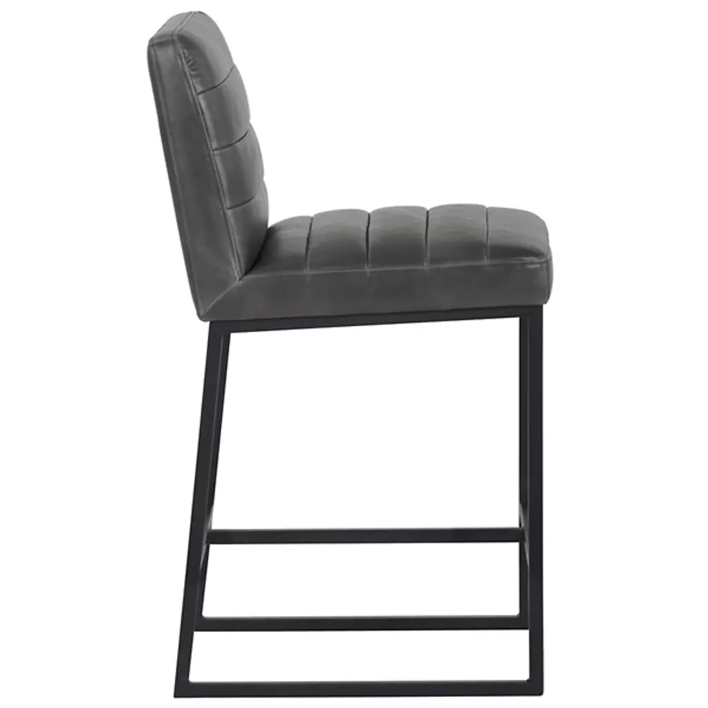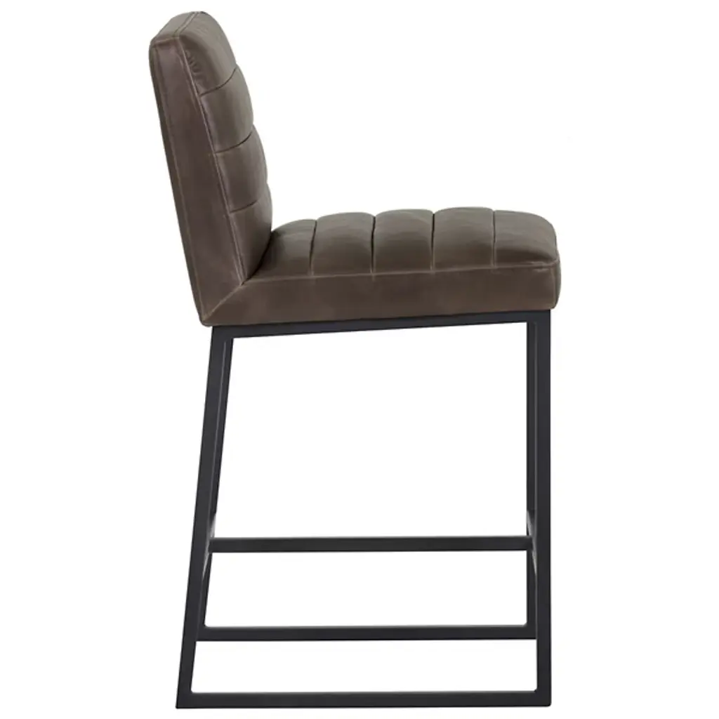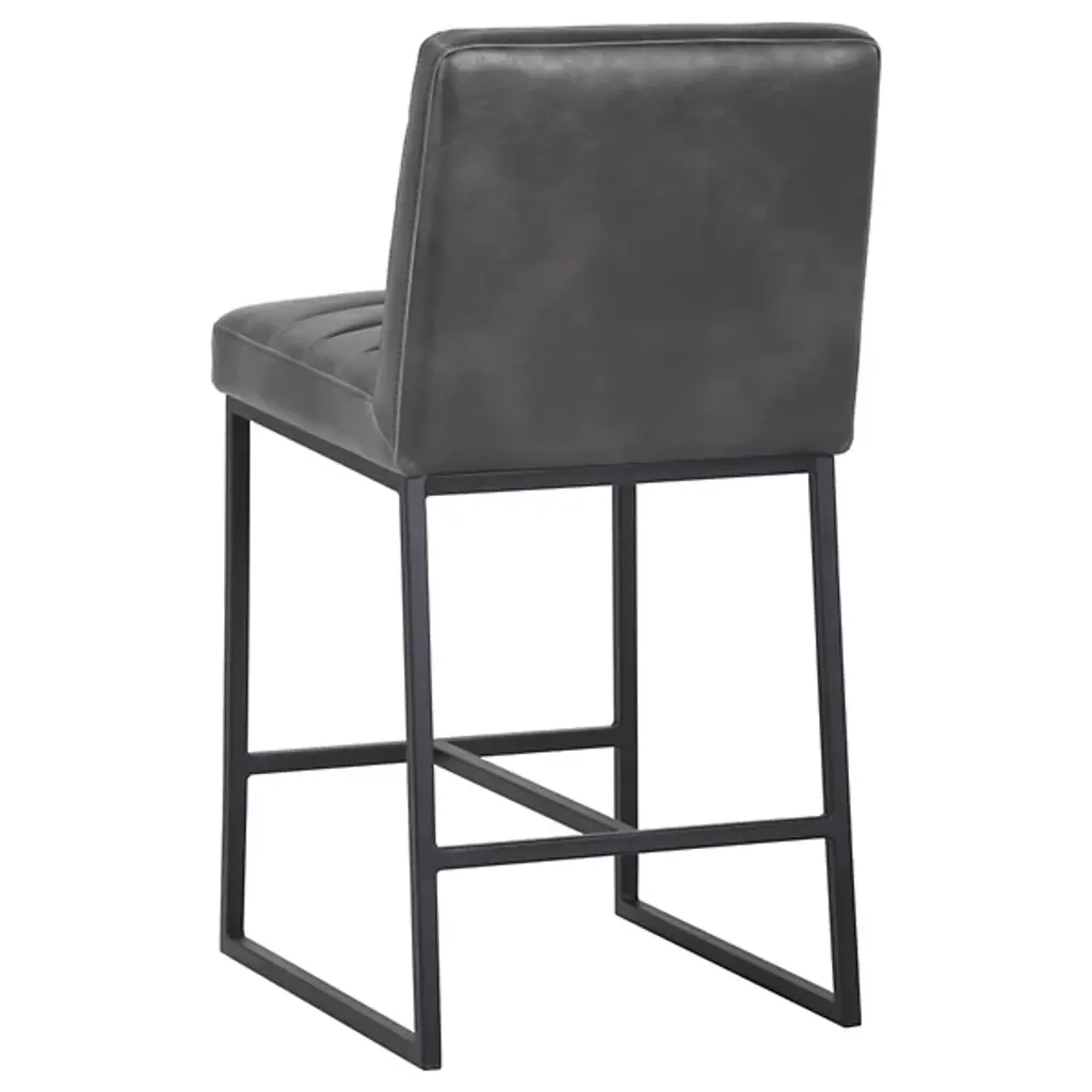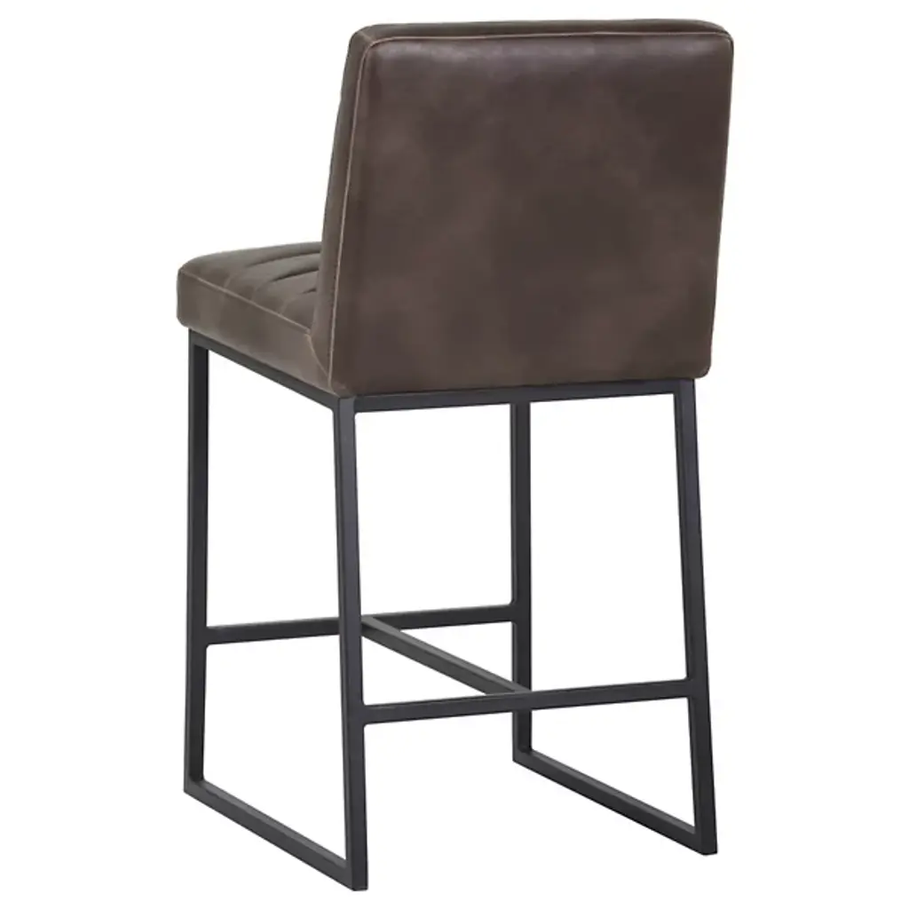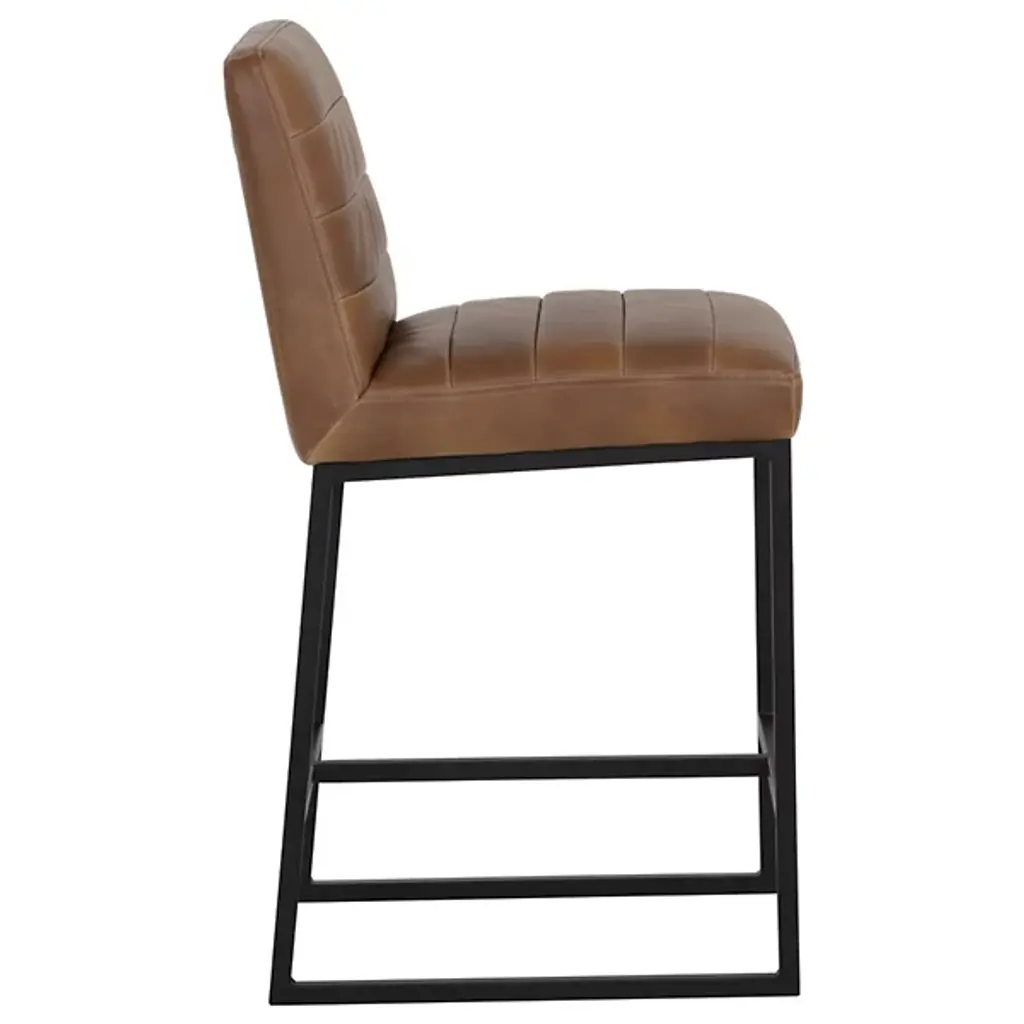 The Spyros Counter / Bar Stool from Sunpan brings retro detail to elevated seating. Elegant horizontal channel tufting adorns the seat surface and back, wrapped in faux leather that develops subtle character variations over time. The black powder-coated steel frame provides a contemporary foundation, while a high-resilience foam fill offers plush reinforcement and ensures lasting comfort. This versatile seat enhances any dining, kitchen, or bar space with a refined modern style.