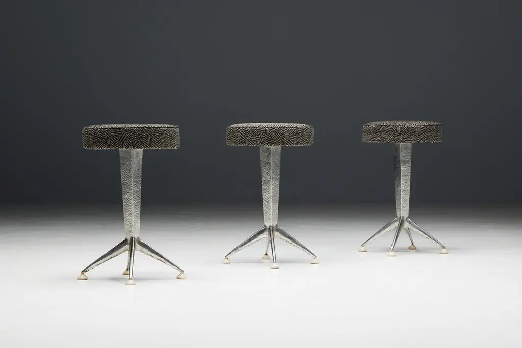 Steel Art Deco Bar Stools, Belgium, 1950s