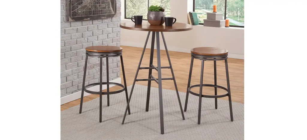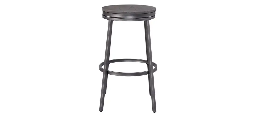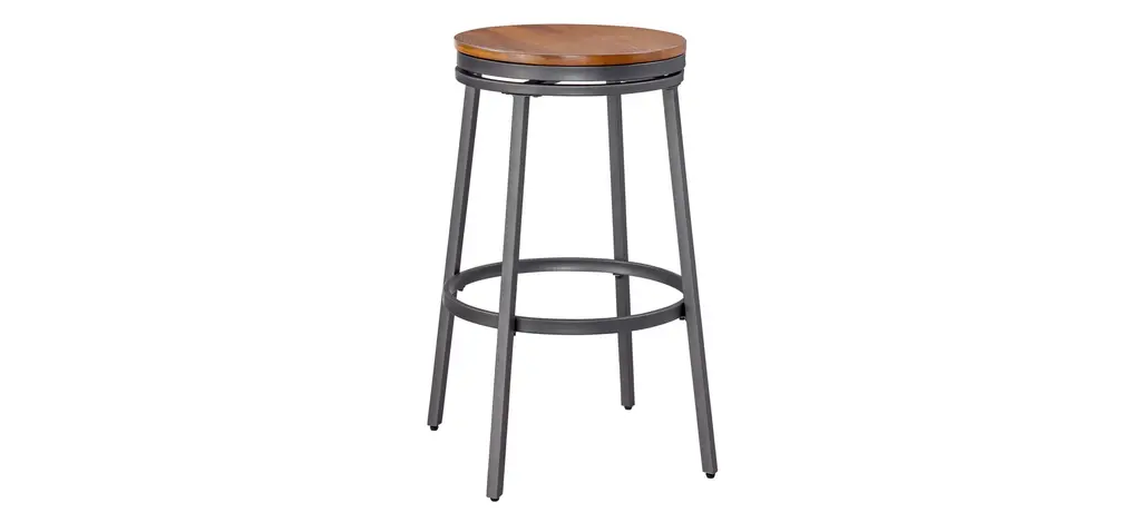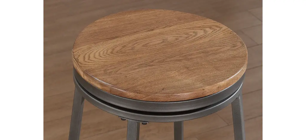 The Stockton backless stool offers a sleek and transitional styling perfect for any d_cor. A warm golden oak finish is used on the seat with a slate gray metal on the base. A 360-degree swivel and comfortable footrest allows guests to enjoy the entire room.