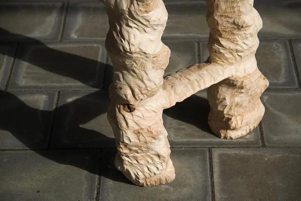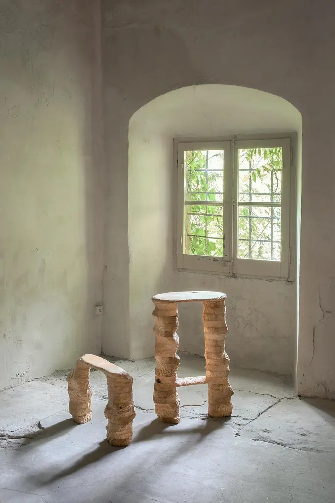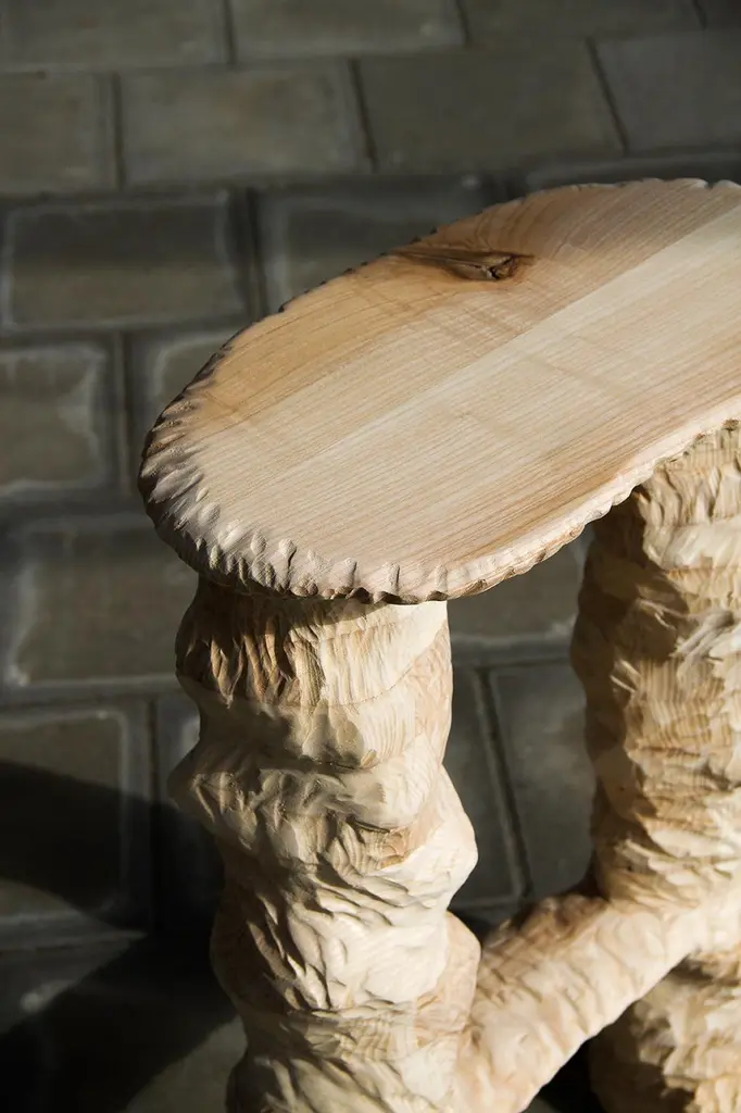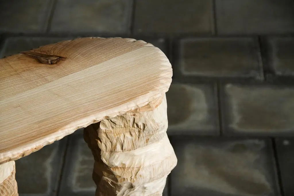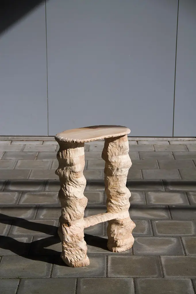 Stool 01 2 Legs Bar Stool by TelluricoSigned And Numbered.Dimensions: D 30 x W 50 x H 75 cm. SH: 75 cm.Materials: Handcarved solid wood with beeswax finish.The piece is fully customizable, it can come with different kinds of wood or finishing. Please contact us.After graduating with a Master of Contextual Design at the Design Academy of Eindhoven, 2017 Francesco Pace founded Tellurico, a multidisciplinary design studio specializing in objects, spaces, and installations design.The investigation of alternative solutions through the study of folklore and the relationship between crafts and the environment has been the center of Tellurico’s practice. The context in which a project is born has been the primary focus of these years' research. What binds the objects to the characteristic of the place intertwines humankind's historical, geological, and social aspects, as well as the uniqueness and simplicity of everyday life. It is an always expanding field of investigation, as endless are the ways to live.In 2020 Tellurico was nominated by Platform Magazine among the Best Italian Designers Under 40. In 2021 Tellurico won the prestigious Officine Saffi Awards with his project Telluride and in 2022 was listed among the Next Pure Talent of 2022 by Elle Decor, in 2023 became part of the AD20 List of the New Italian Rising Talent from AD-Italia and 2024 Exibart nominated Tellurico among the 222 Designer and Artist to which invest in to.So far, Tellurico’s works have been presented in many international venues such as the Biennale of Architecture in Venice, and the Van AbbeMuseum in Eindhoven, Ithra in Dammam, Hong Kong Design Institute, M.A.D.RE. Museum in Naples, Triennale di Milano, Brøhån Museum in Berlin, Collectible Bruxelles, Beirut Design Fair, Italian Pavilion in Barcelona, Zoya Museum in Bratislava, and others. He works closely with cultural institutions, international brand,s and private collectors receiving commissions from different galleries such as the Emma Scully Gallery in New York, Side-Gallery in Barcelona, Mint Londo,n and soon with Philia GalleryAmong other things, Tellurico is also a professor of Product Design at NABA in Milan.Tellurico lives and works in the Netherlands.