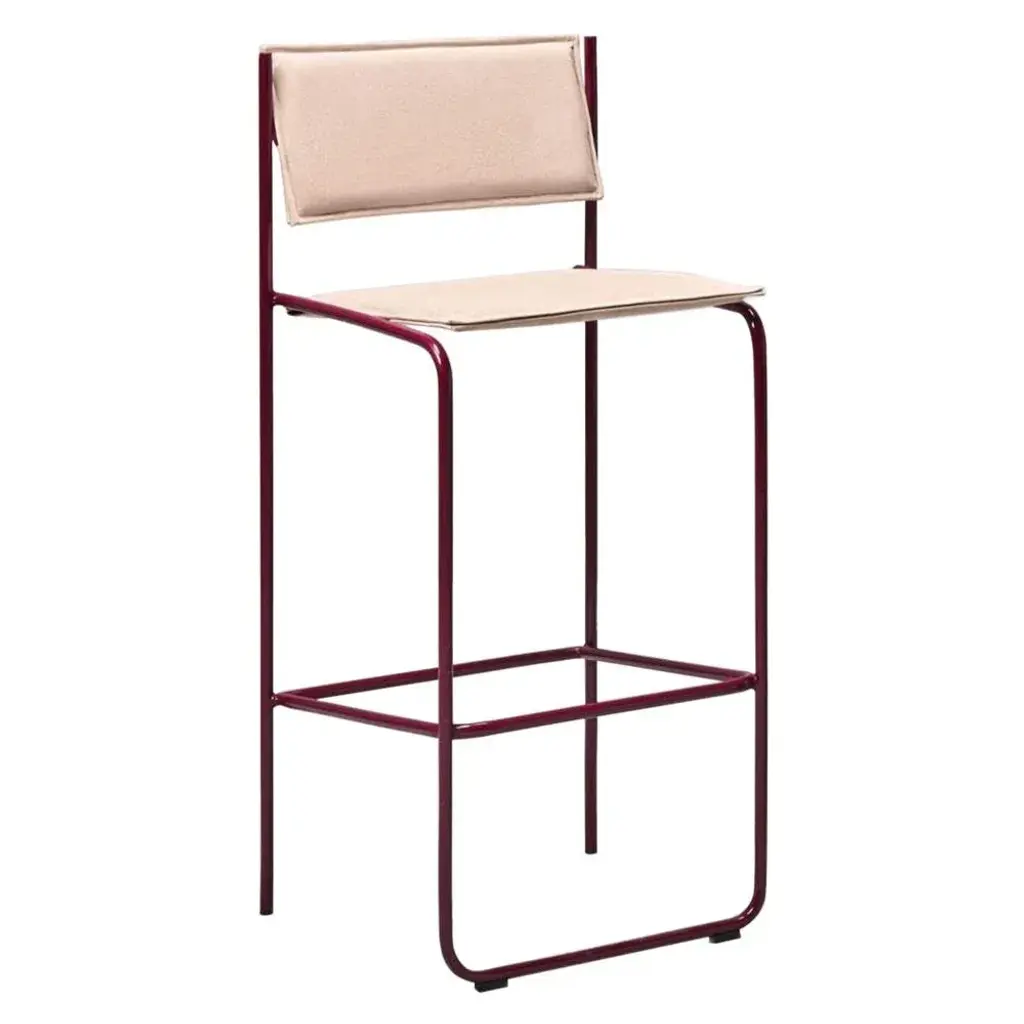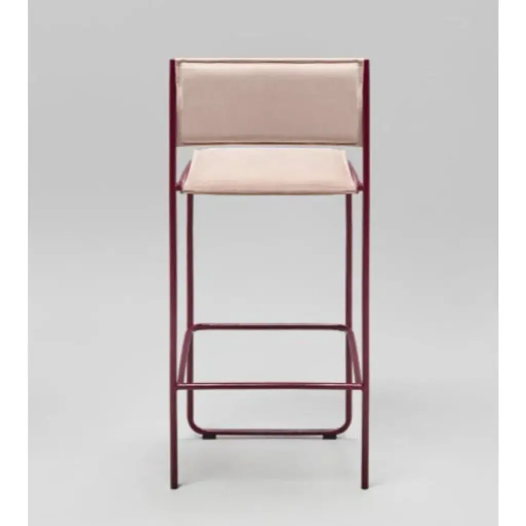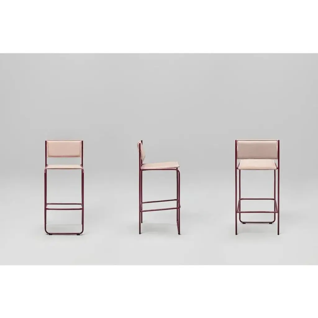 Trampolín stool by pepe albargues dimensions: w47, d49, h103, seat76 materials: chrome plated or painted iron structure foam cmhr (high resilience and flame retardant) for all our cushion filling systems removable backrest and seat covers copper(gloss-matt) finishings. Trampolin is a collection made up of a chair, bar stool and a bench. This very singular collection with a bauhaus inspiration makes it a perfect choice to get a functional, comfortable and light atmosphere this piece is attributed to the mentioned designer/maker. It has no attribution mark and no official proof of authenticity, however it is well documented in design history. I take full responsibility for any authenticity issues arising from misattribution