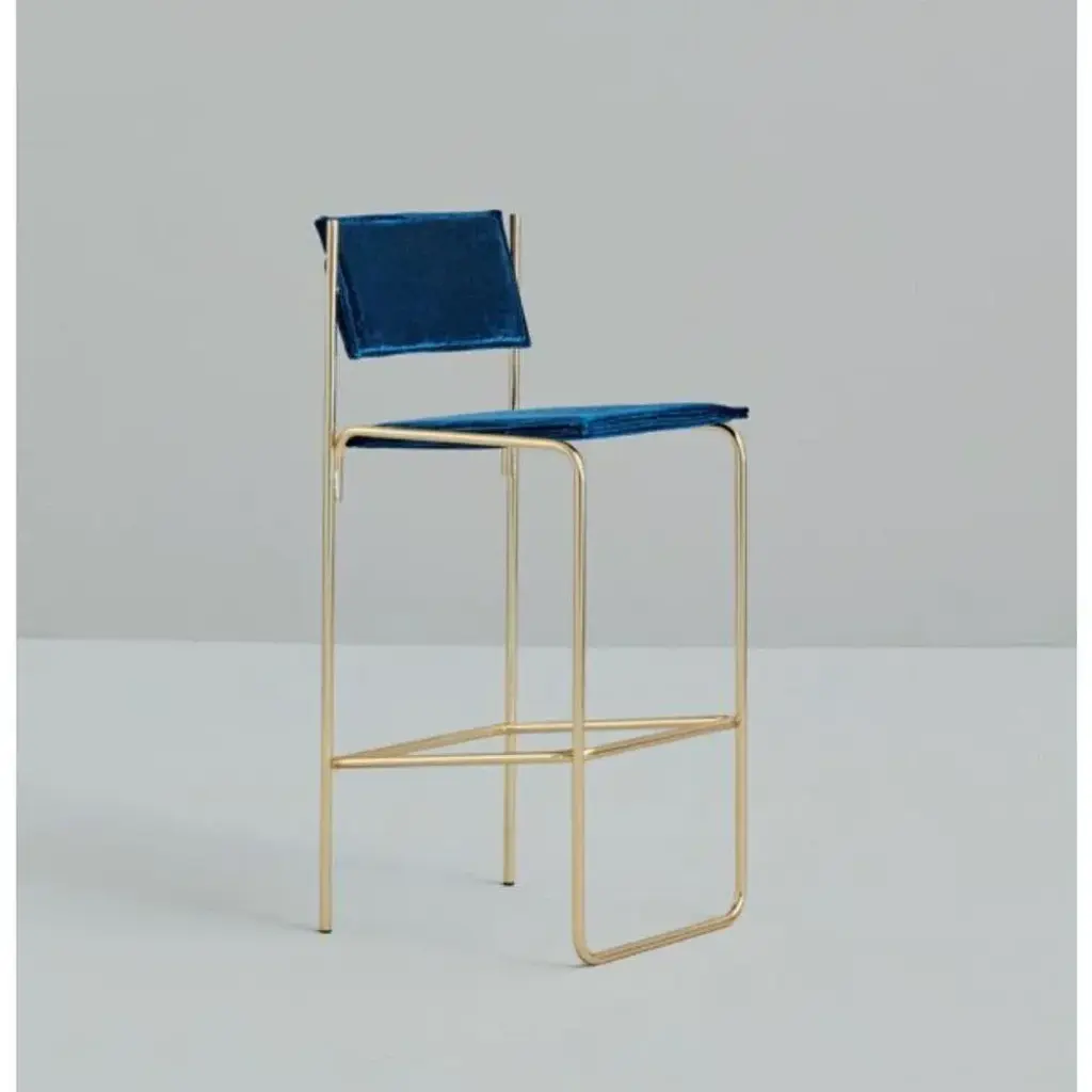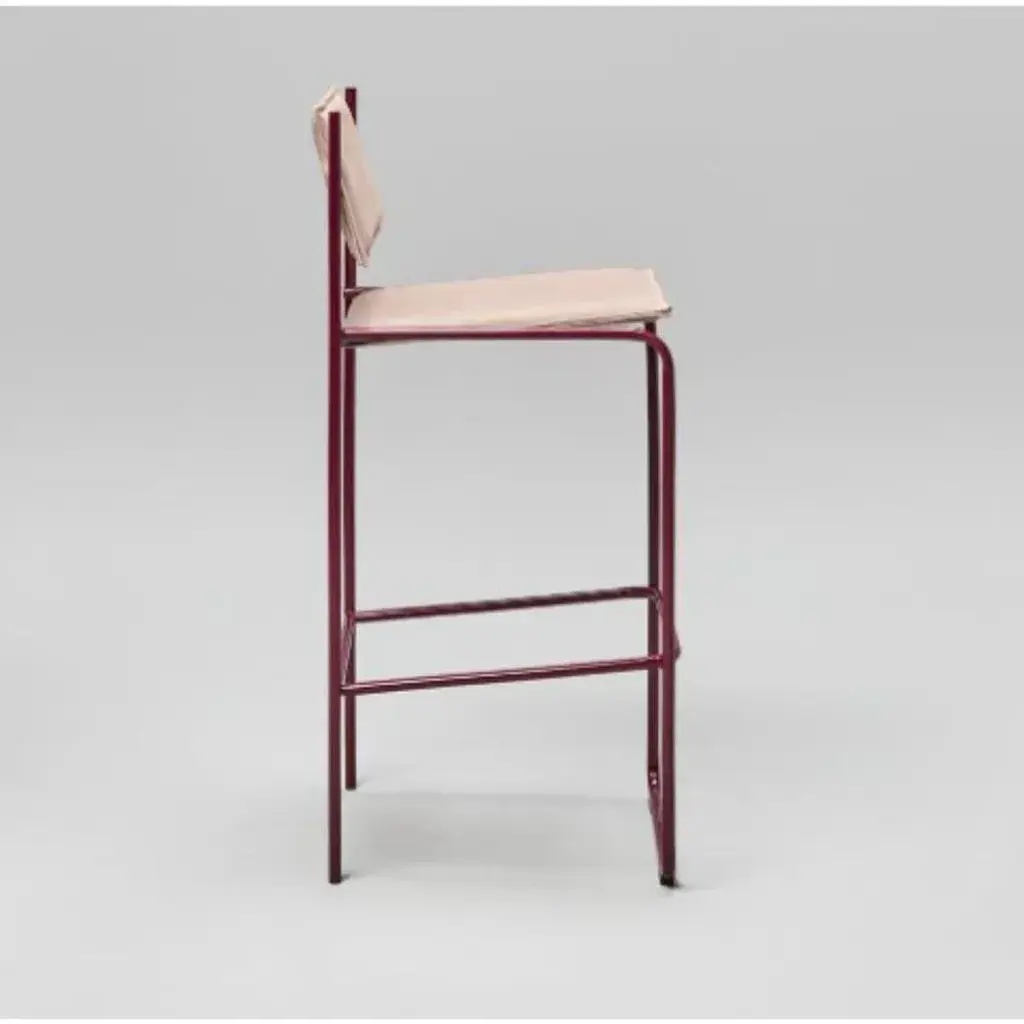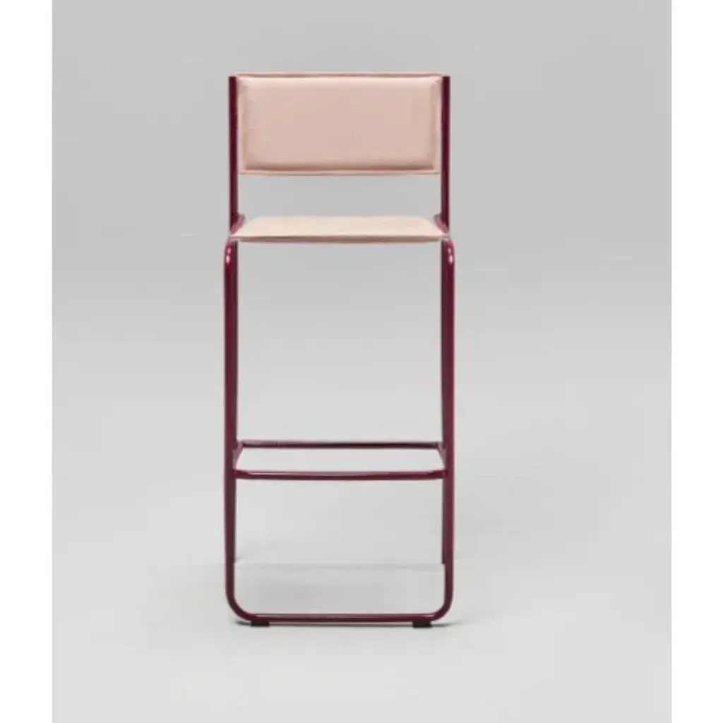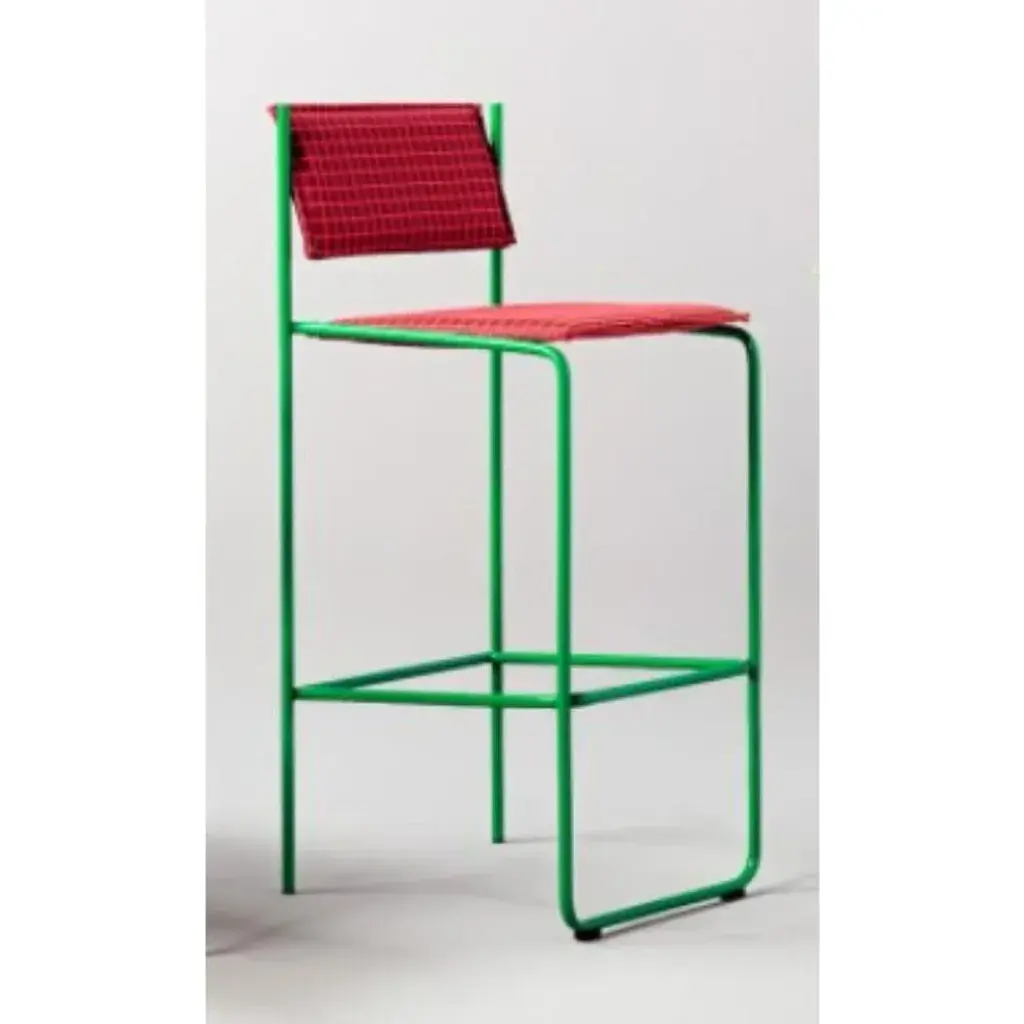Trampolín stool by pepe albargues dimensions: w47, d49, h103, seat76 materials: chrome plated or painted iron structure foam cmhr (high resilience and flame retardant) for all our cushion filling systems removable backrest and seat covers copper(gloss-matt) finishings. Trampolin is a collection made up of a chair, bar stool and a bench. This very singular collection with a bauhaus inspiration makes it a perfect choice to get a functional, comfortable and light atmosphere this piece is attributed to the mentioned designer/maker. It has no attribution mark and no official proof of authenticity, however it is well documented in design history. I take full responsibility for any authenticity issues arising from misattribution