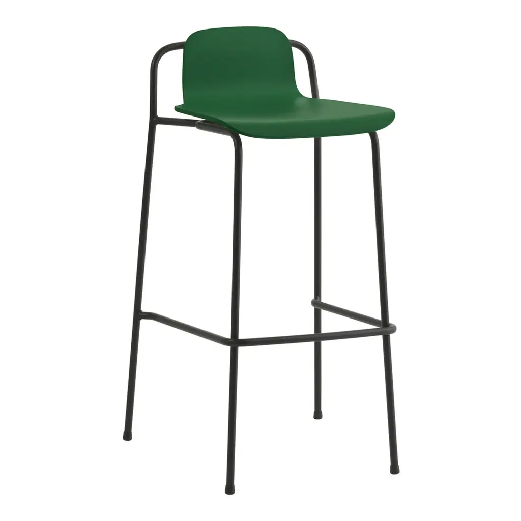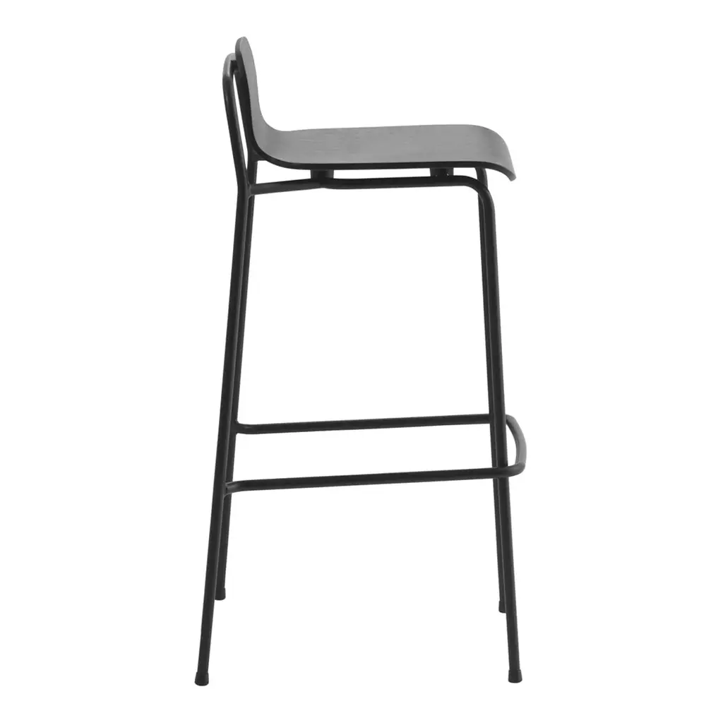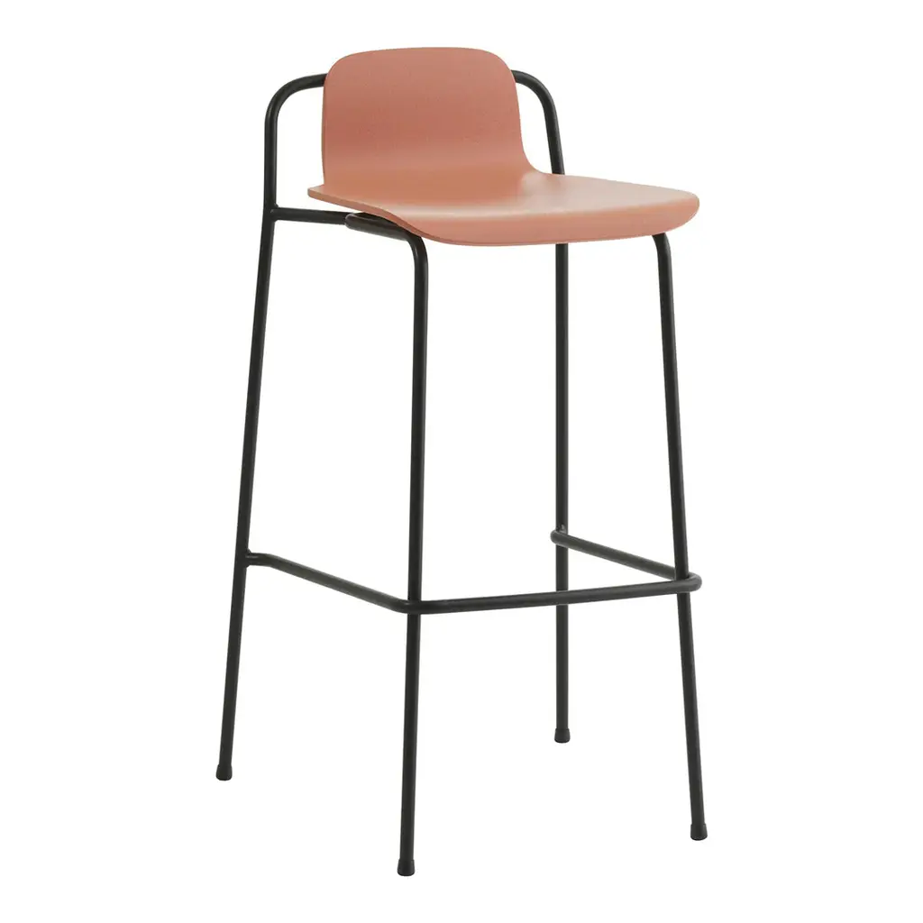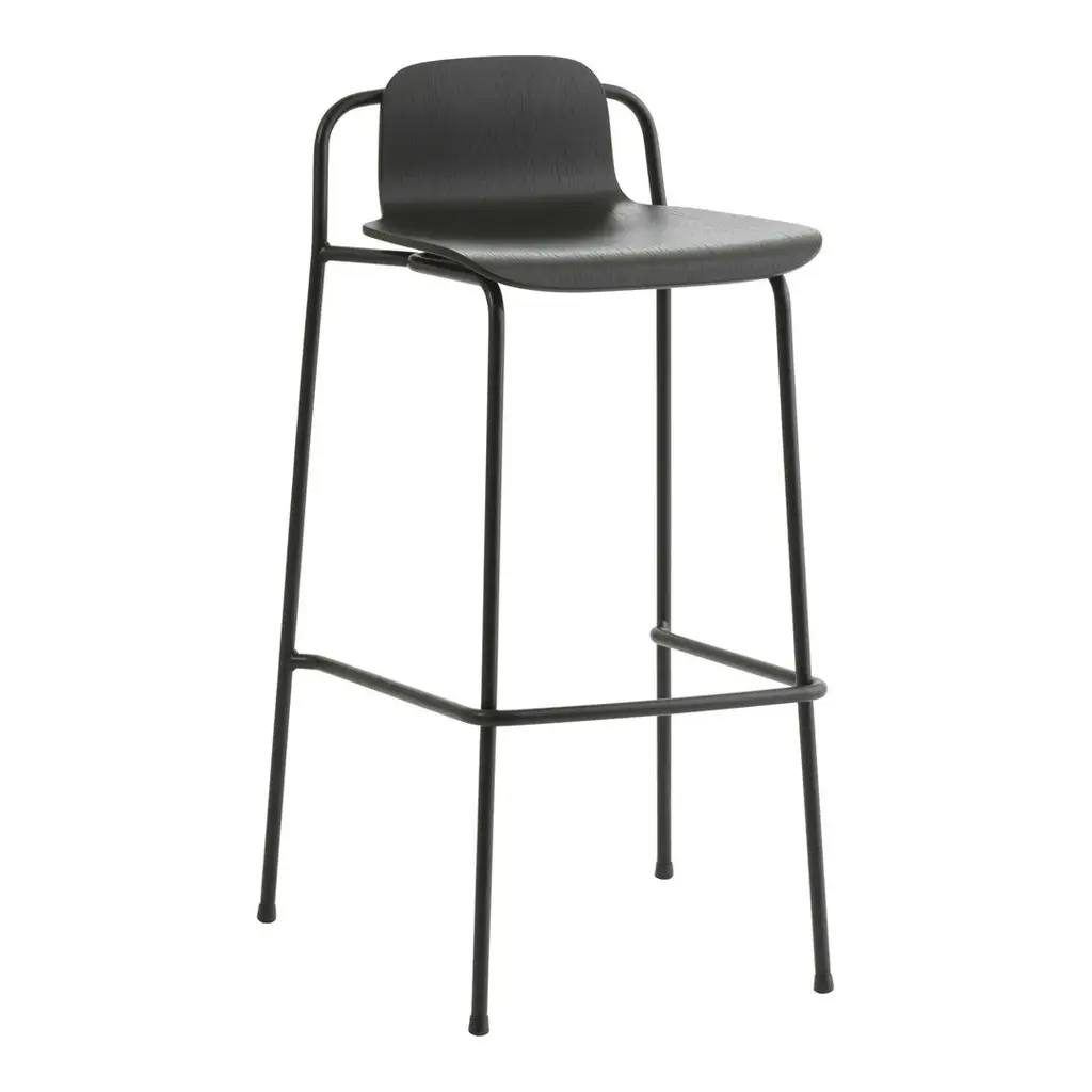 There is something virtually graphic about the way the slender steel frame grows out below the Studio chair's seat and back, framing the molded shell in an airy design. The flowing lines stand out in an eye-catching silhouette, like a line drawing or a pictogram, just as the empty spaces between the frame and the back act to define the shape. The simple construction in veneer and steel tubing directs one's thoughts towards older French factory chairs, giving Studio its industrial notes. A design that attracts attention, but glows with pure simplicity. The multi-purpose Studio chair series is designed for use in both domestic and public spaces. The series includes chairs, armchairs and barstools in two heights. All models are stackable, making the range suitable for restaurants and educational facilities with the need for transformable areas. The steel frame makes it easy to grab hold of the chairs and move them around as required.