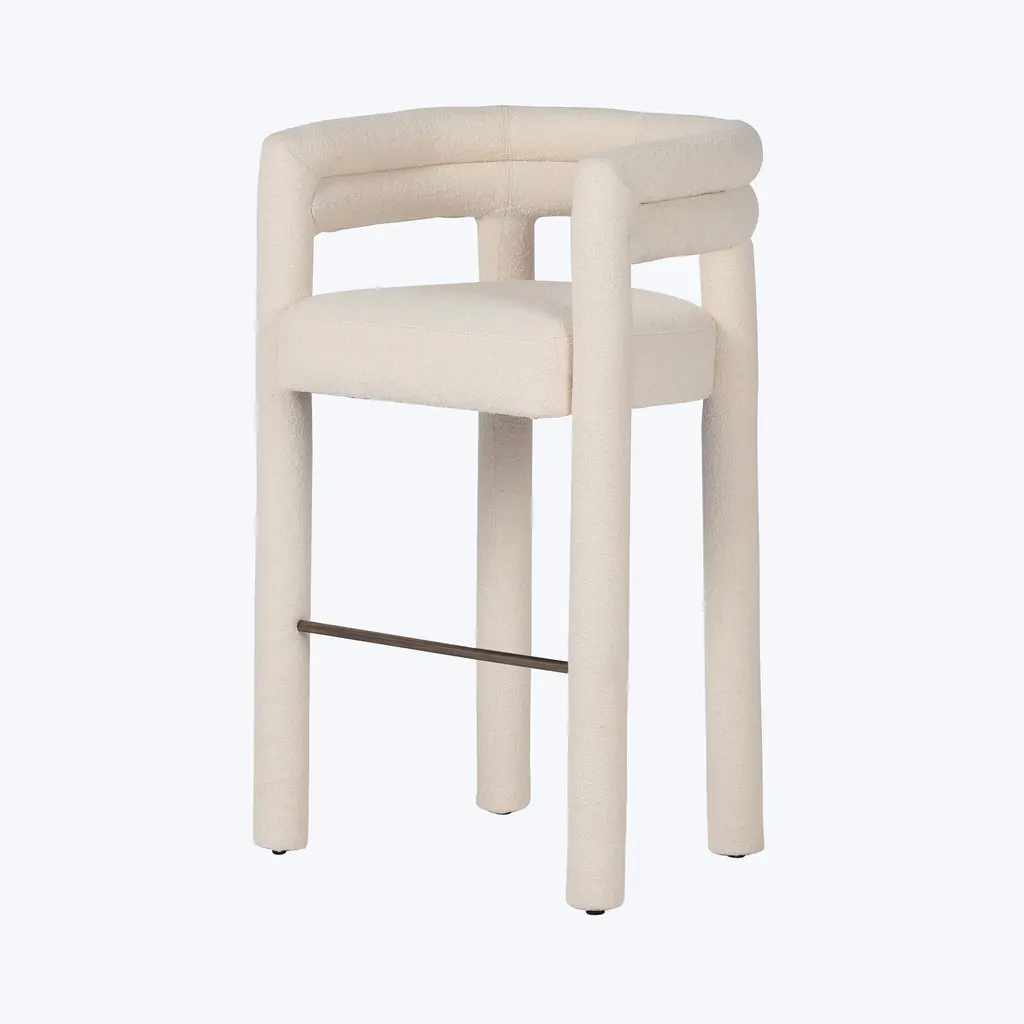 The Four Hands Tacova Bar Stool embodies a blend of modern elegance and inviting comfort, perfect for any elevated dining space. With dimensions of 25" W x 23.5" D x 30" H and a seat height of 31", it is thoughtfully proportioned for a bar top, offering a poised seating experience that balances both style and functionality.Fully upholstered in a luxurious fabric, composed of 76.8% cotton and 23.2% polyester, this stool provides a refined textural appeal. Tubular shaping lends a graceful fluidity to its form, while a sturdy metal stretcher enhances both stability and visual allure. Weighing 28.22 lb, the Tacova Bar Stool is crafted with durability in mind and offers a sophisticated addition to your kitchen or bar, merging contemporary lines with a timeless aesthetic.