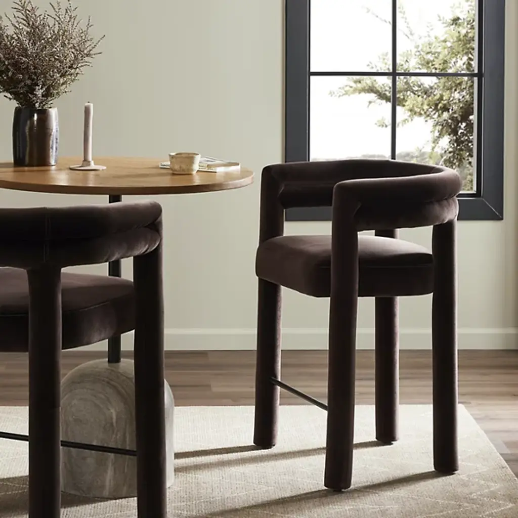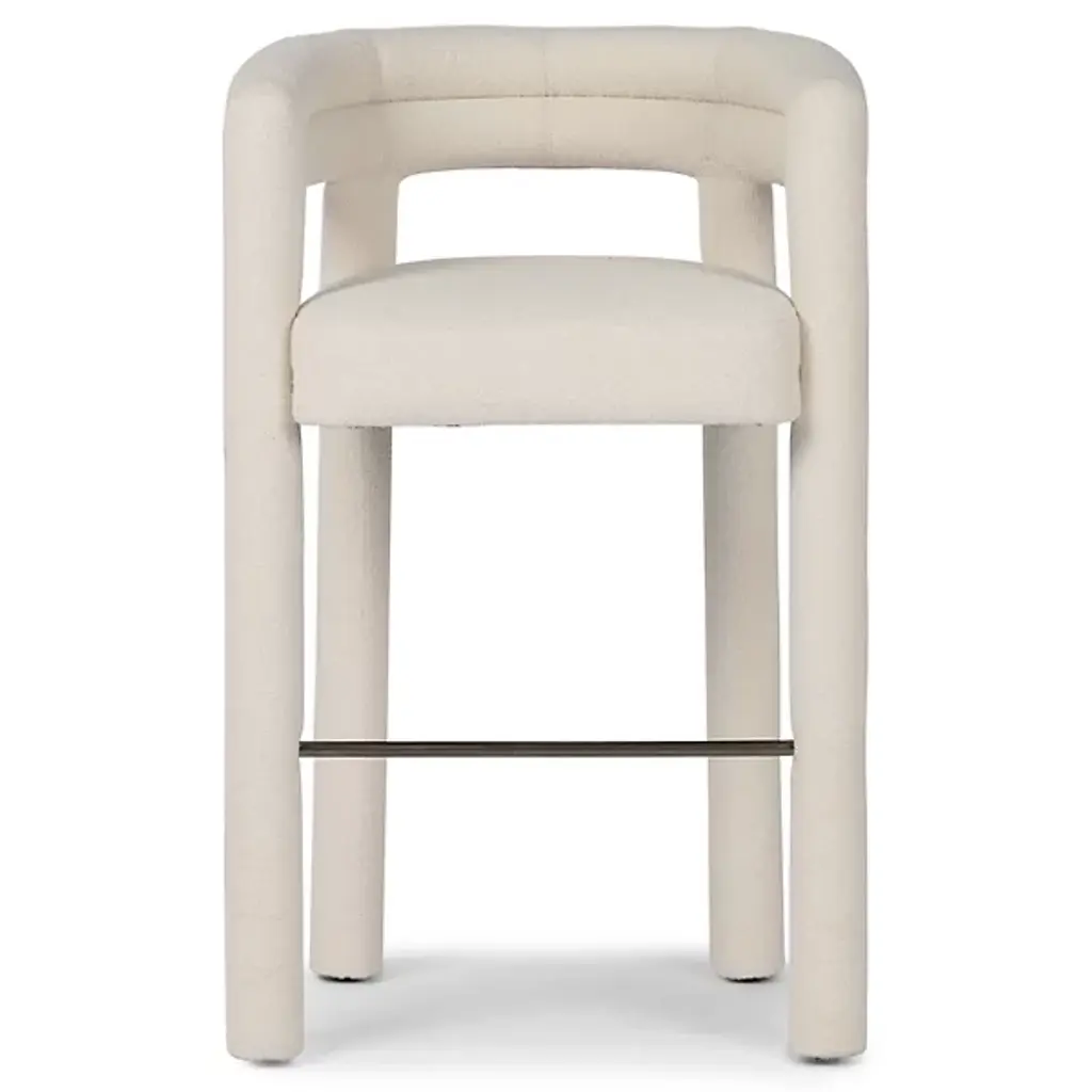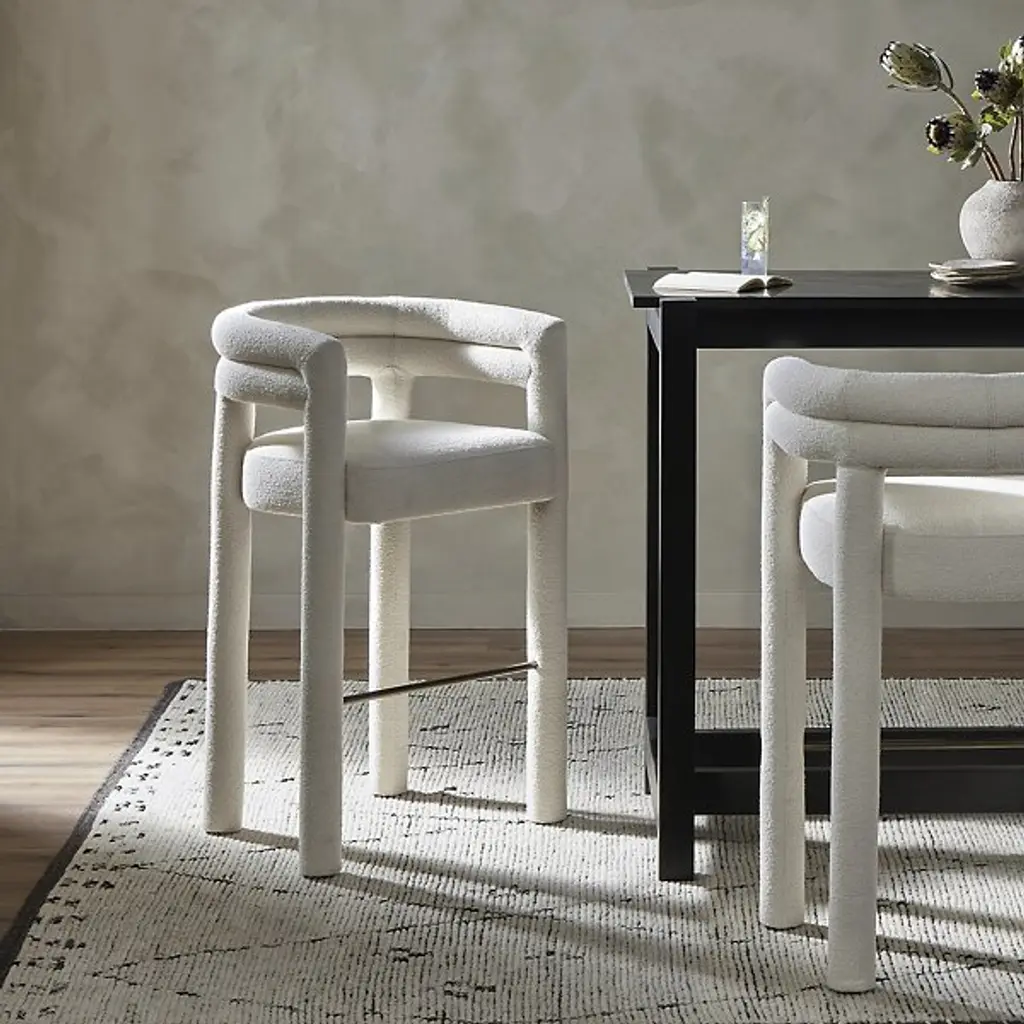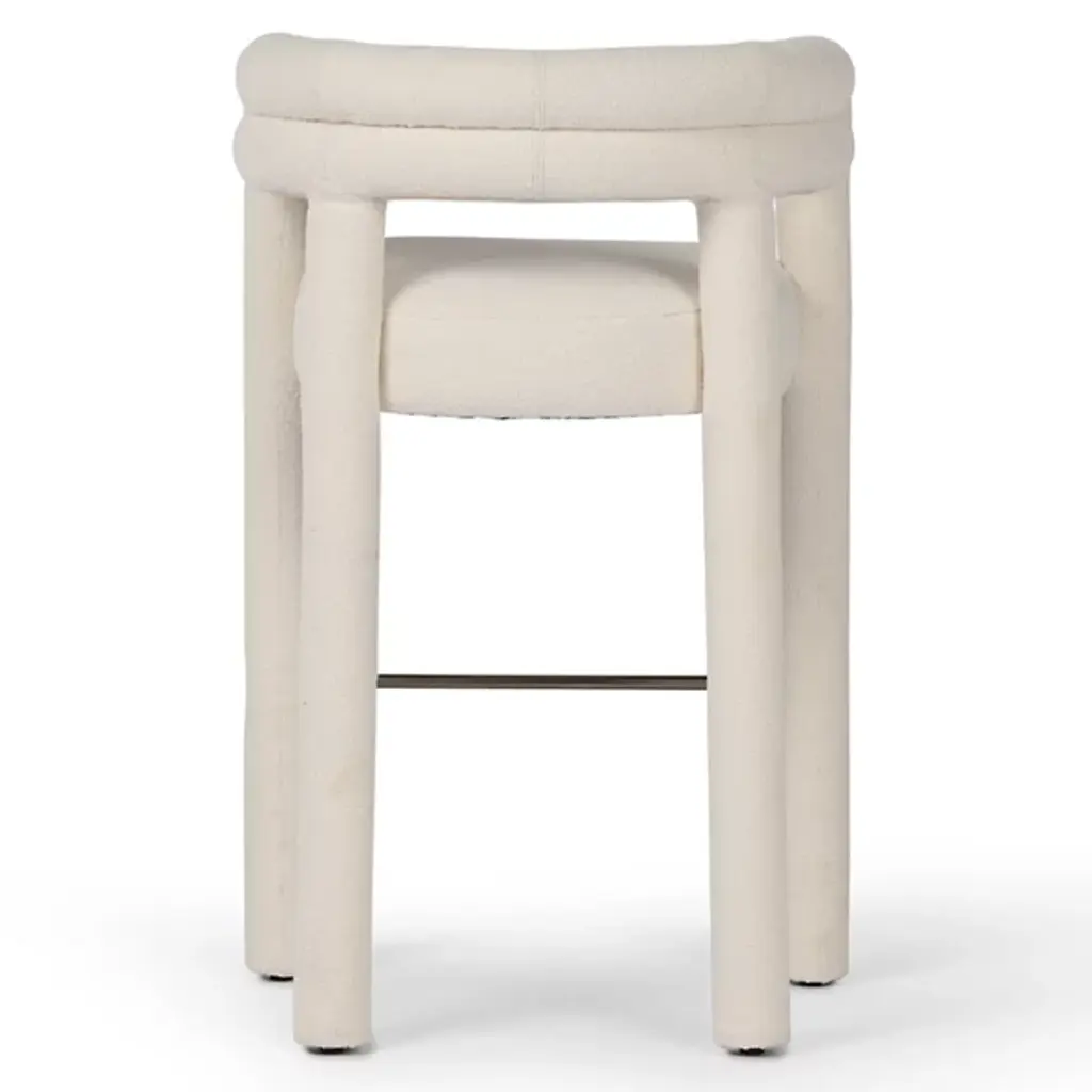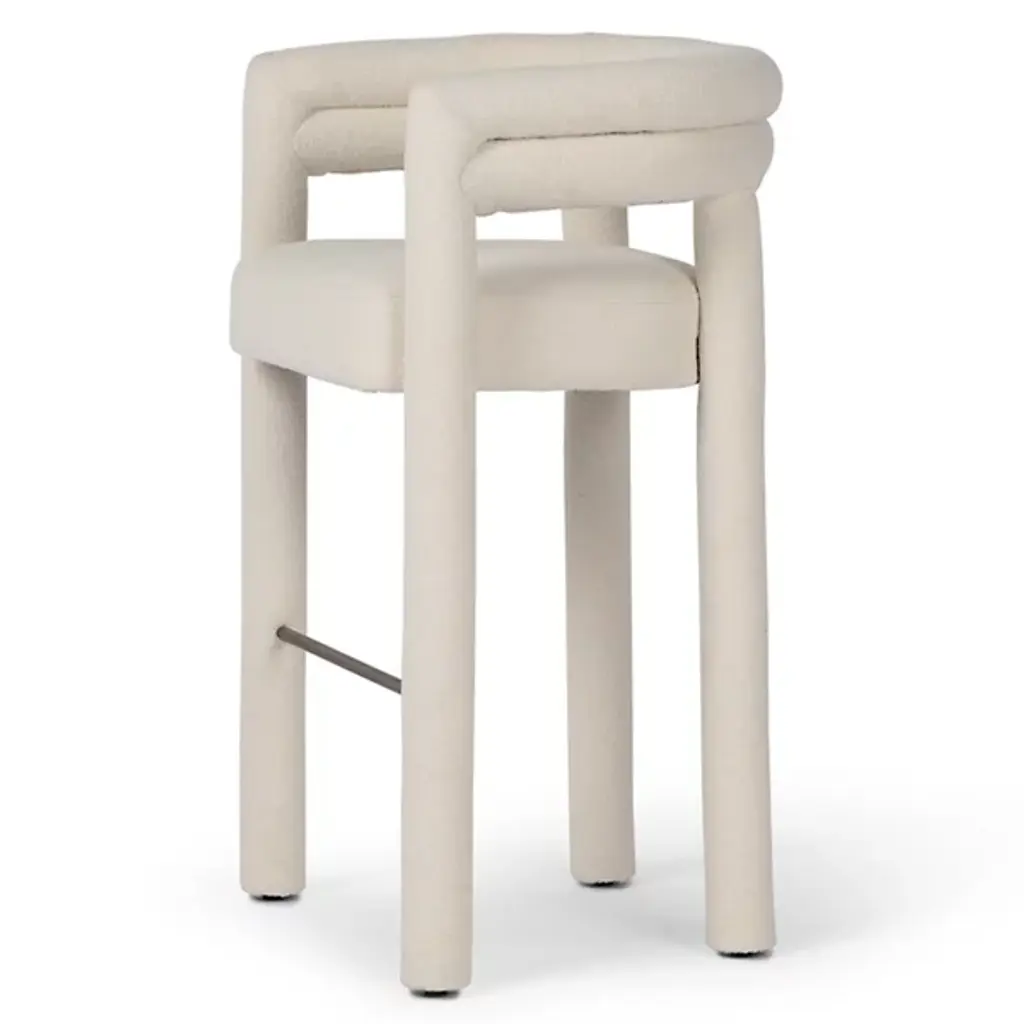 The Tacova Counter/Bar Stool from Four Hands is a chic and contemporary seating solution that effortlessly combines style and comfort. Crafted with a contoured open shape for artistic flair and designed with a high-quality fabric blend, this stool offers visual intrigue and a luxurious touch. The fill material is a blend of 90% polyurethane foam pad and 10% polyester fiber batting, offering a plush and supportive seating experience for your guests.