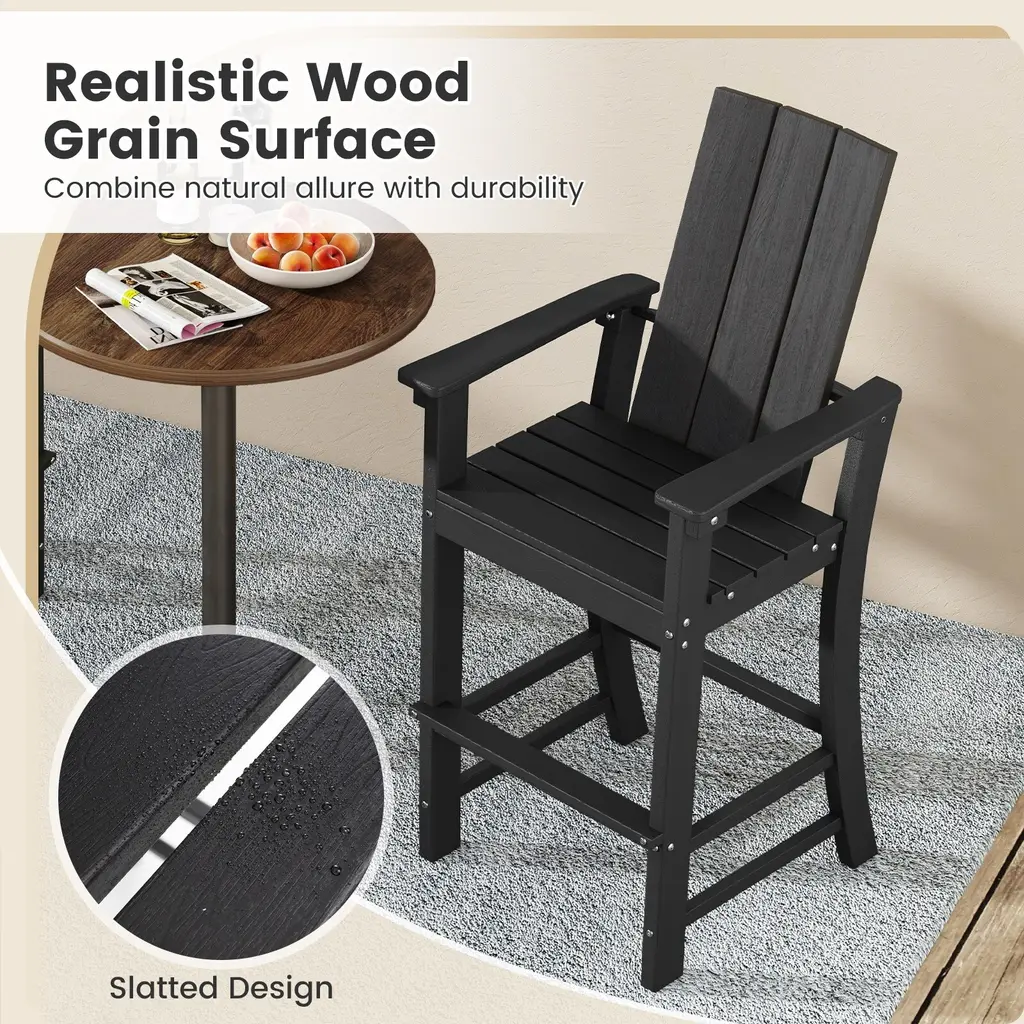 Tall Adirondack Chair Outdoor Bar Stool With Ergonomic Backrest For Backyard - 27.5" X 23" X 52" (L X W X H) - Black