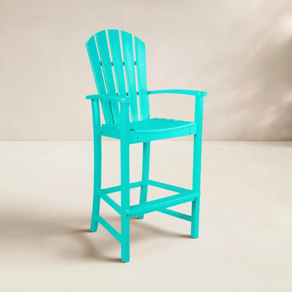 Tall Adirondack Chair Outdoor Bar Stool With Ergonomic Backrest For Backyard - 27.5" X 23" X 52" (L X W X H) - Turquoise