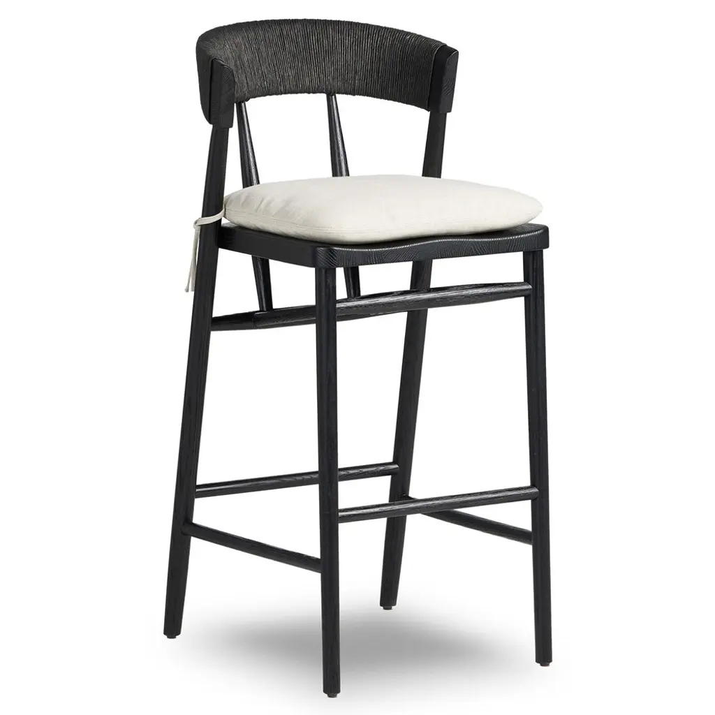 Tanner Updated Traditional Cream Performance Black Oak Woven Bar Stool
