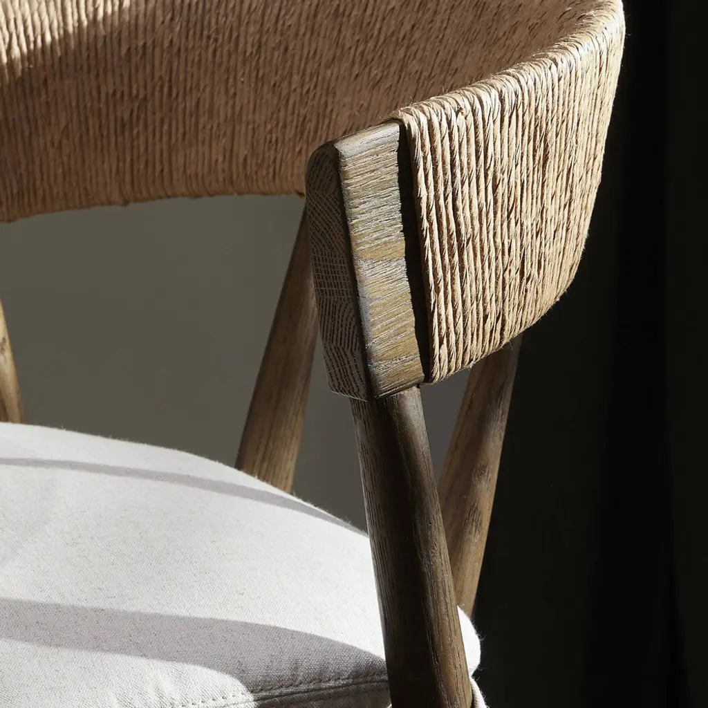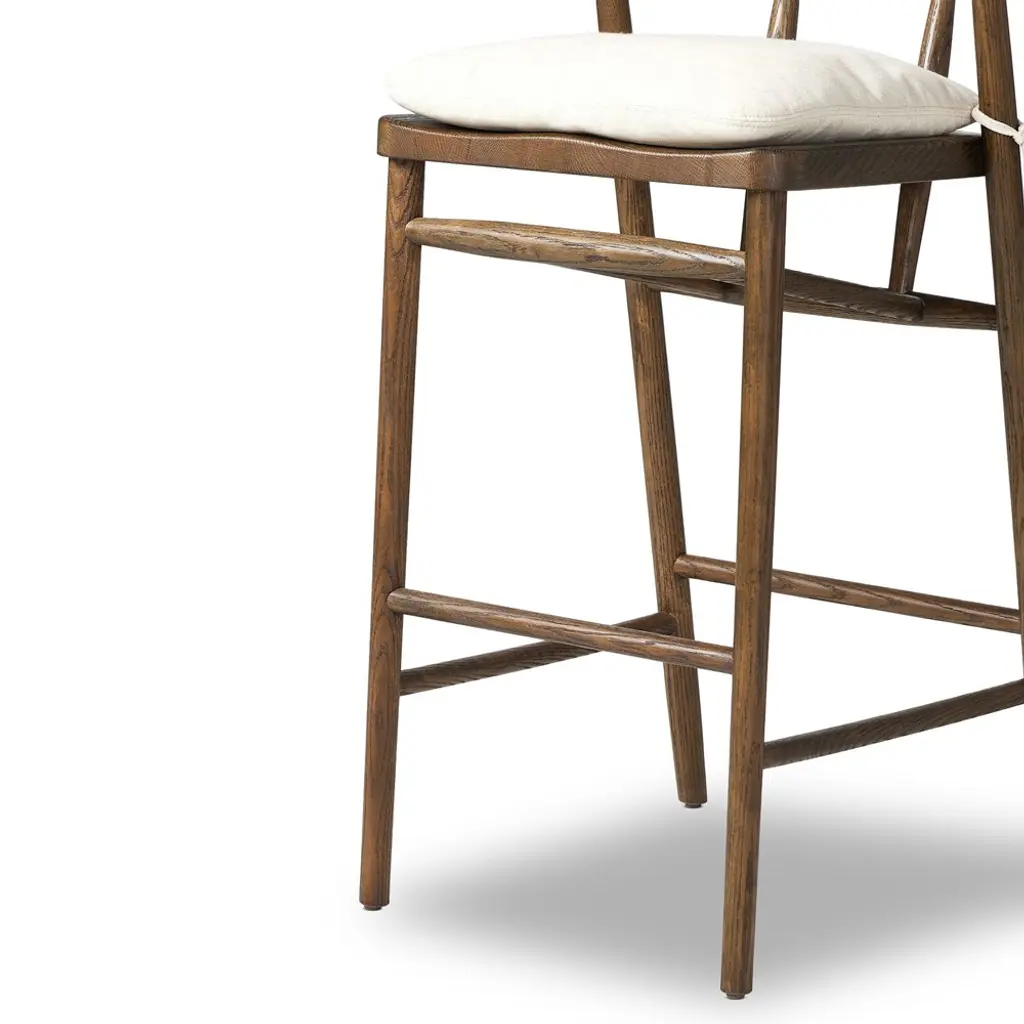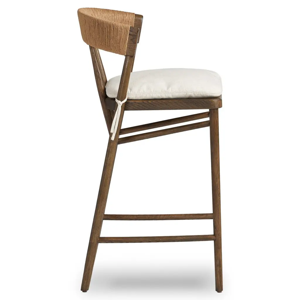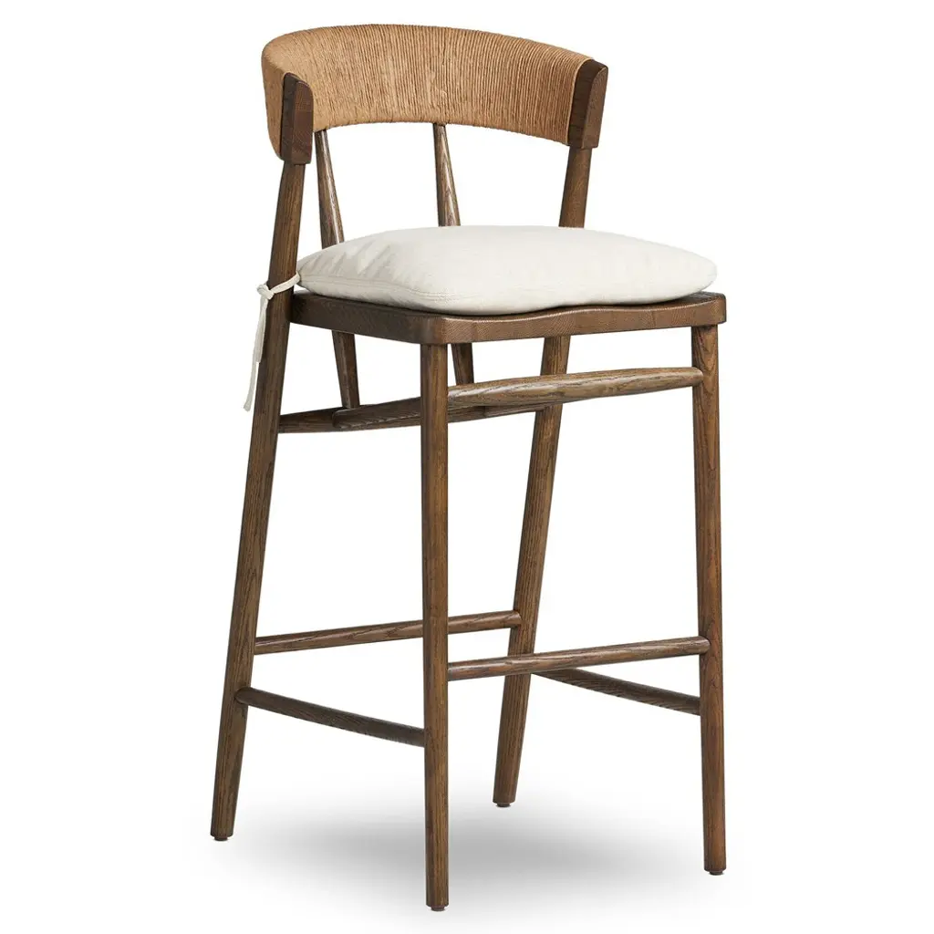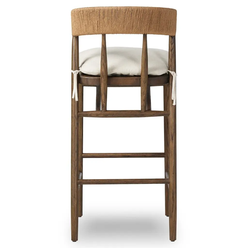 Tanner Updated Traditional Cream Performance Brown Oak Woven Bar Stool