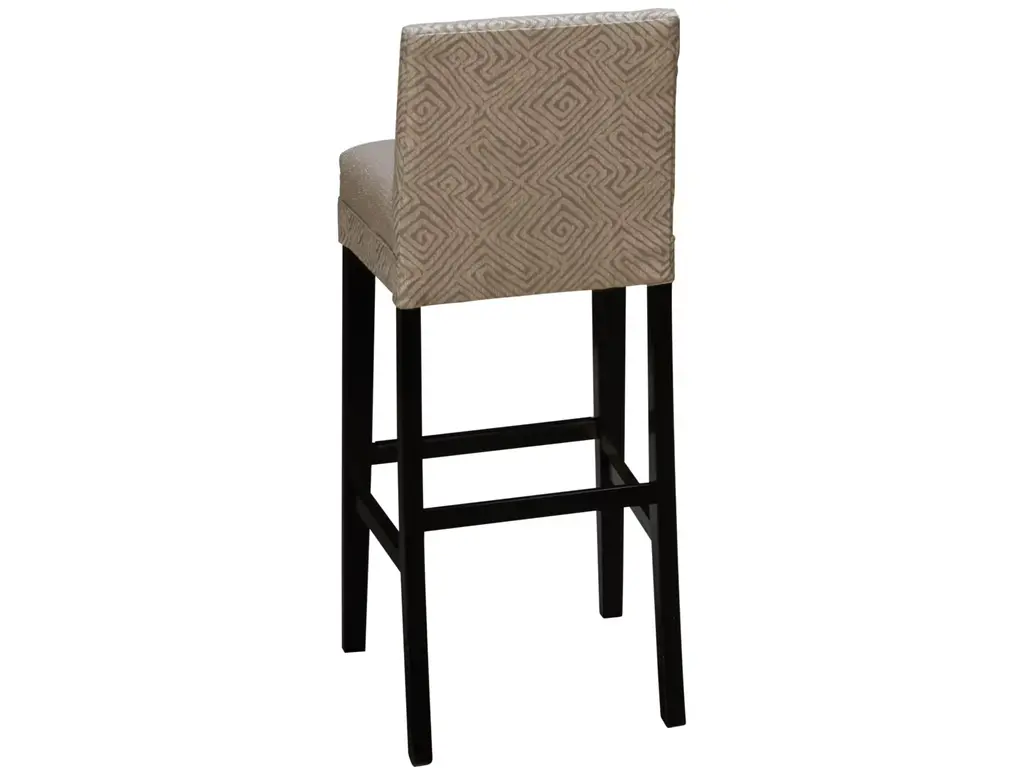 Give your dining space comfort and style with the 30" Upholstered Bar Stool from HB Designs. It has a square profile, and is upholstered in an intriguing zig-zag maze pattern, supported by black square legs, and a convenient footrest. This transitional-style, stationary stool makes ideal seating for your bar or kitchen. Custom-order fabrics are available.