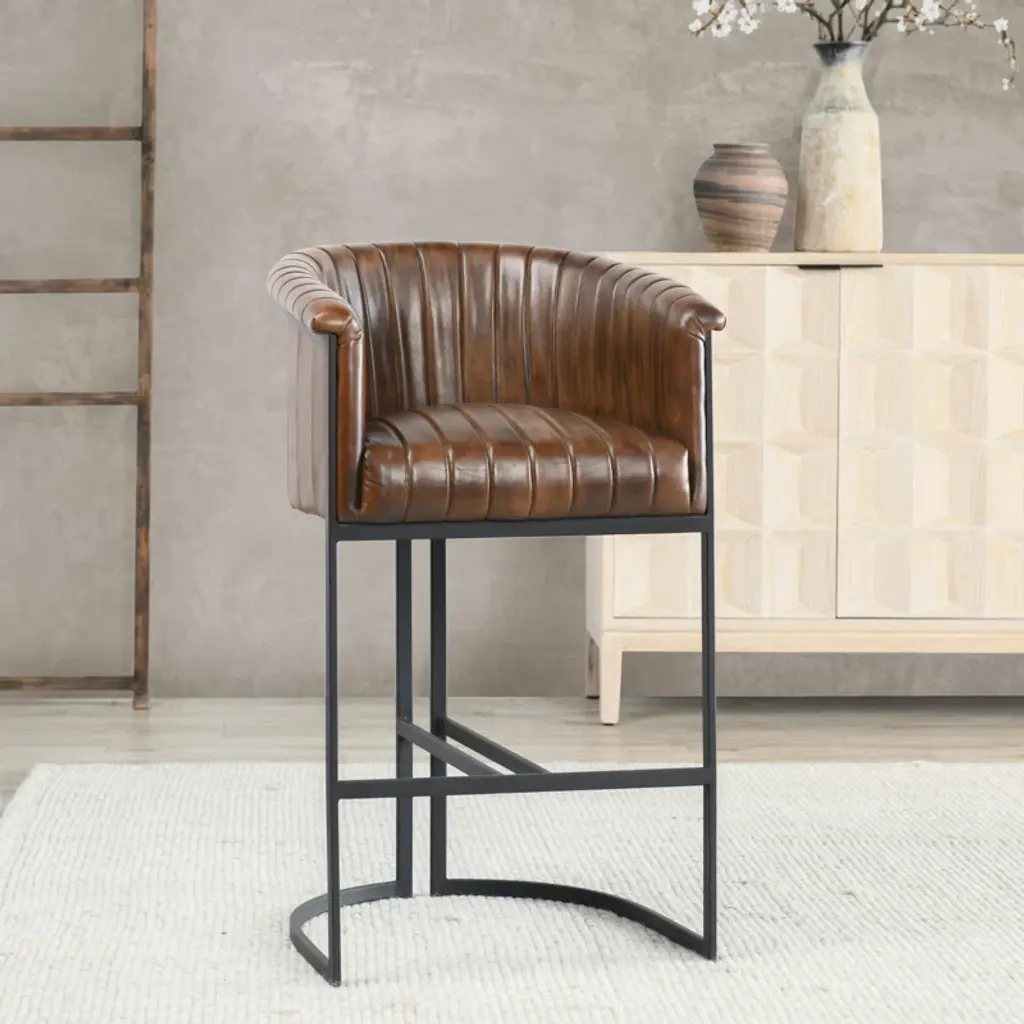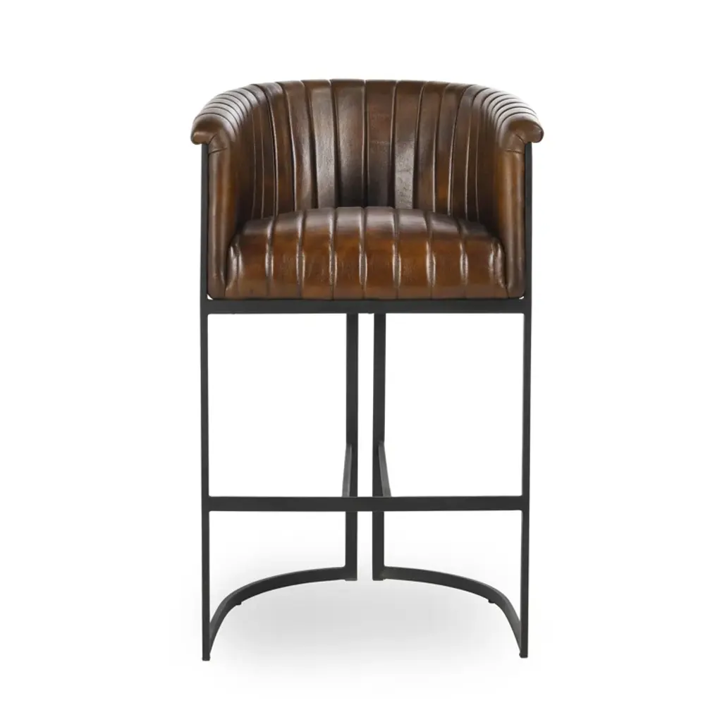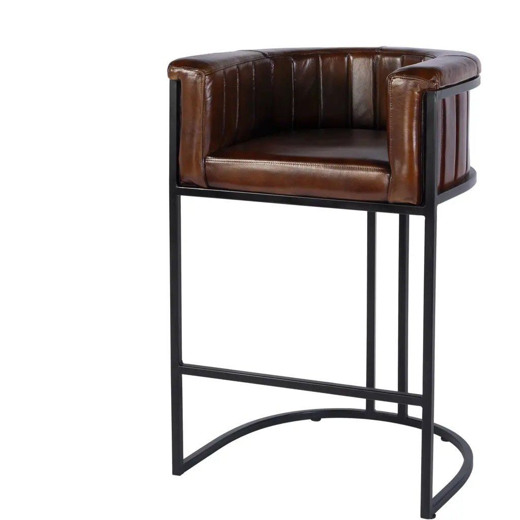 Drawing on the modernity of contemporary design, our stool showcases a modish yet timeless profile. The top-grain morel leather in combination with an antique brass modernizes the half-circle shape that echoes the design of traditional tub-style chairs.