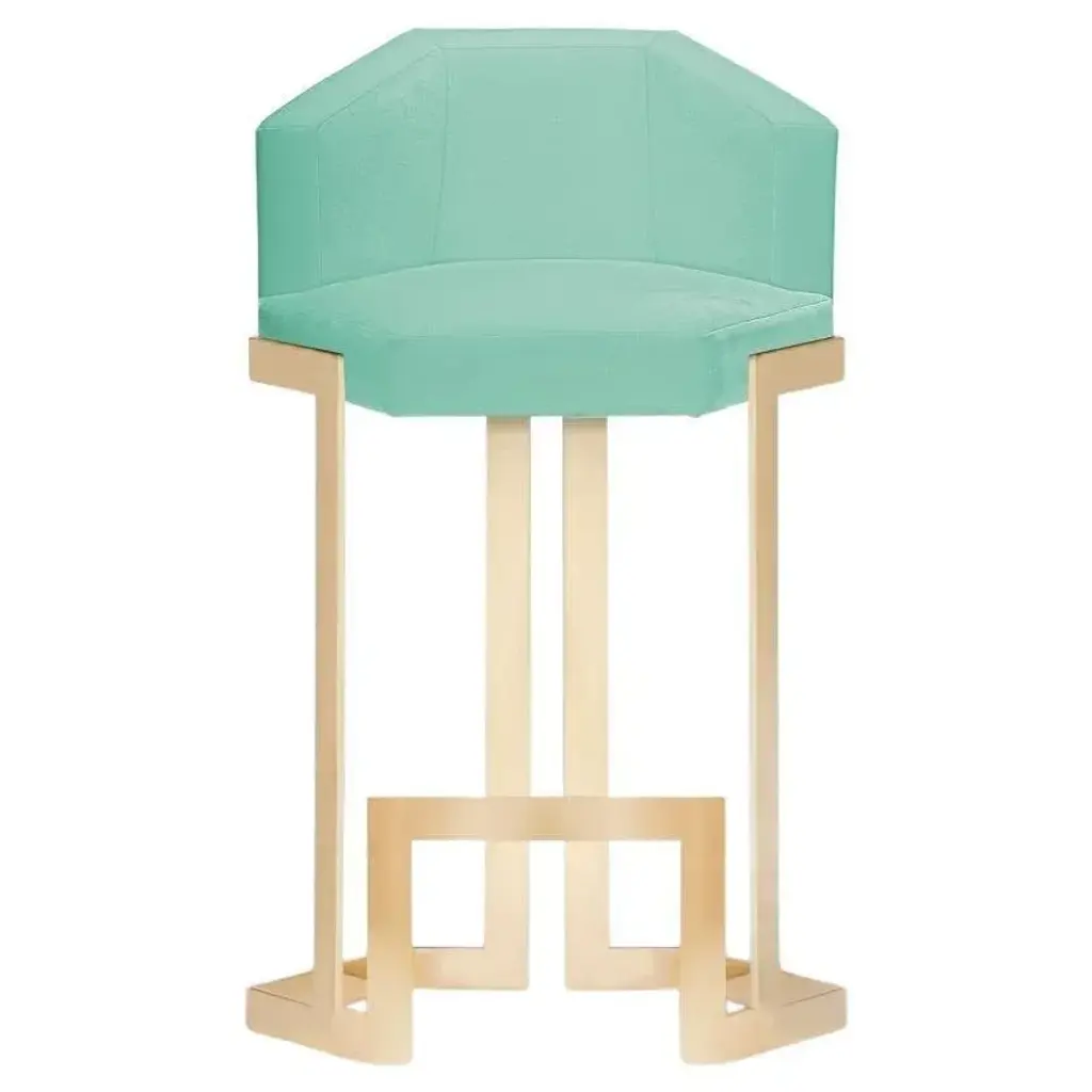The hive counter stool by royal stranger dimensions: d66 x w55 x h105 cm materials: celadon cotton velvet. Cotton velvet, polished brass. Weight: 15 kg finish options: upholstery available in all royal stranger’s fabric collection. Available in com. Client’s own material) legs available in brass, stainless steel and copper with polished or brushed finish, or lacquered in all ncs/ral colors with matte or glossy finish. A chair with an extremely luxurious vision. The hive counter stool, as the name implies, is strong and robust in nature, its hexagonal shape gives it a unique and clear design that is simple but careful and very attentive to detail. this piece is attributed to the mentioned designer/maker. It has no attribution mark and no official proof of authenticity, however it is well documented in design history. I take full responsibility for any authenticity issues arising from misattribution