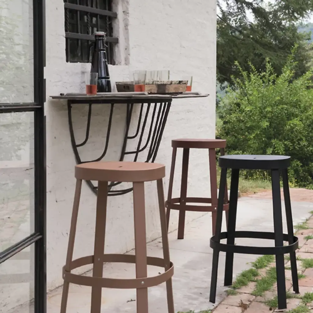 Add stylish seating to outside bars or counter spaces with the smooth, open appeal of the Thor Outdoor Stacking Backless Barstool Set Of 4 from Emu. A four-legged tubular steel construction with a solid steel seat, it’s made in Italy, an inspired creation from the mind of Marco Marin. The stool’s simple form incorporates his experience in industrial design, its airy form adding a fluid flair to the otherwise purely-functional structure, embellished with a powder-coated finish for added durability in inclement weather conditions.