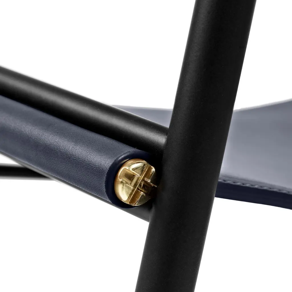 The “Repose” contemporary stool belongs to a collection that revisit the director chair collection, serene pieces where exclusivity and precision are shown in small details such as the hand-turned metal nuts and bolts that fix the leather surfaces, that go unnoticed at first sight.The robustness of the steel structure is combined with the delicacy of the rounded structure. The matte metal finishes evoke the passage of time and are complemented by vegetable tanned cowhide leathers that age gracefully with its use.The “Repose” armchair is designed and conceived as a tribute to director’s chair or luxury safari foldable furniture. All pieces are done with cold steel rods, machined on a turning lathe, black powder coated and lacquered with a matt rubber effect. Our signature screws are made with brass turning lathed, polished, and lacquered, these are the pieces that fix the saddle leather to the metal frame.Leathers are Spanish hides vegetable tanned. We use premium saddles in five colors to adjust to your taste and interior needs. This traditional vegetable dyeing and tanning method is an organic technique that relies on natural tannings from bark or plant tissues. The use of oils and natural fats give the leather a distinctive flexibility and texture, allowing it to be molded, retain its shape and age graciously.All skins are carefully selected from food industry sub-products, with a minimum thickness of 3.5 mm / 0,02 in, using the part of the animal's shoulder, which allows for larger pieces and uniformity, even though signature wrinkle from the animal’s neck may be recognizable. The vegetable tanning is a traditional and artisan treatment, which is respectful to the environment. Even with careful selection natural marks as a result of the contact with other animals, the age, origin and characteristics of the skin, or even the season in which the tanning takes place cannot be avoided. We still believe that these factors only add authenticity and uniqueness to every piece. Our leather parts are made with double saddles, always showing the top side of the hides that presents the better quality.Customization options.With the aim of creating customized pieces, clients can select from the various leather colors to create pieces that complement their home décor. Leather colors available, black, navy, dark brown, cognac and natural tobacco, and steel color is black.Normally we use off white threats for stitches, but client can select another option, being possible to select any color to make a unique piece for the project it belongs. The finish on the edges of our leather components is sanded and hand painted. We have the option to select an alternative color if not tone on tone will be applied.Please consult in case you are interested on having a particular heat embossing stamp on the leather.Our high-end collections are made to full fill home spaces where to gather and enjoy great conversation with families and friends. Occasional one-of-a-kind furniture for exquisite homes, from cottages to exclusive resorts. Our product is understood as a sculptural piece of design, as an art object to be displayed at different house spaces as library, bar, living, foyer, bedroom, powder, meeting, grand or great room.The different finishes options make the furniture perfect combinations on diverse styles, from rustic mountain home, a small cottage, a ski lodge retreat, or industrial a minimalist look. The 'Repose' contemporary armchair is a part of our exclusive collection that reimagines the classic director chair with a serene and exquisite design. Every detail is carefully crafted, from the hand-turned metal nuts and bolts that secure the leather surfaces, to the robust yet delicate combination of steel and rounded structure. The matte metal finishes evoke a timeless appeal, complemented by vegetable-tanned cowhide leathers that age gracefully over time.Designed as a tribute to director's chairs and luxury safari foldable furniture, the 'Repose' armchair is meticulously constructed using cold steel rods, machined on a turning lathe, and finished with a black powder coating and a matt rubber effect. Our signature brass screws not only add elegance but also securely fix the saddle leather to the metal frame.We use premium Spanish hides that undergo vegetable tanning, a traditional and environmentally-friendly technique relying on natural tannings from bark or plant tissues. The use of oils and natural fats gives the leather a distinctive flexibility, texture, and longevity, allowing it to mold, retain its shape, and age gracefully. Each skin is carefully selected from food industry sub-products, ensuring a minimum thickness of 3.5 mm / 0.02 in. While some natural marks and wrinkles from the animal's neck may be noticeable, we believe they enhance the authenticity and uniqueness of every piece.Our leather parts are made with double saddles, always showcasing the top side of the hides for superior quality. We offer customization options to suit individual preferences and home décor, with a range of leather colors including black, navy, dark brown, cognac, and natural tobacco. The steel color is black, seamlessly blending with various interior styles.For stitching, we typically use off-white threads, but clients have the flexibility to select alternative colors, making each piece truly unique. The edges of our leather components are meticulously sanded and hand-painted, providing a refined finish. Additionally, we offer the option to choose an alternative color for a striking contrast if a tone-on-tone effect is not preferred.If you desire a personal touch, we offer the possibility of incorporating a particular heat embossing stamp on the leather. Our high-end collections are designed to create a gathering space for families and friends, offering one-of-a-kind furniture for exquisite homes, ranging from cottages to exclusive resorts. Each piece is a sculptural work of art, perfect for various ho