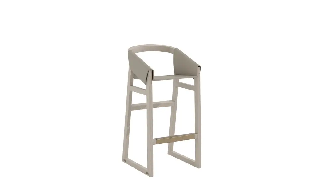 The Timeless bar stool is a sophisticated piece that combines solid wood construction with a sleek design. Its uniquely shaped seat, crafted in natural leather, adds a touch of elegance and comfort. The footrest is accented with a brass detail that not only provides protection but also enhances the stool's refined aesthetic. TIMELESS is designed to bring a luxurious and enduring style to any bar or counter setting, embodying Casa Magna’s commitment to quality and distinctive design.PRIMARY IMAGE: Show in upholstered with Laguna Toffee Leather, Legs Solid Wood SW08 Satin Open Pore Details and Rest Feet Antique Brass MT01.Essence Collection celebrates the timeless beauty of organic shapes by combining painted woods, natural stones, and a palette of neutral tones to create a luxurious aesthetic.The passion to create high-quality luxurious furniture, capable of providing emotional experiences is the reason for our existence and continuous evolution.Experience the unique atmosphere created by our Essence Collection.