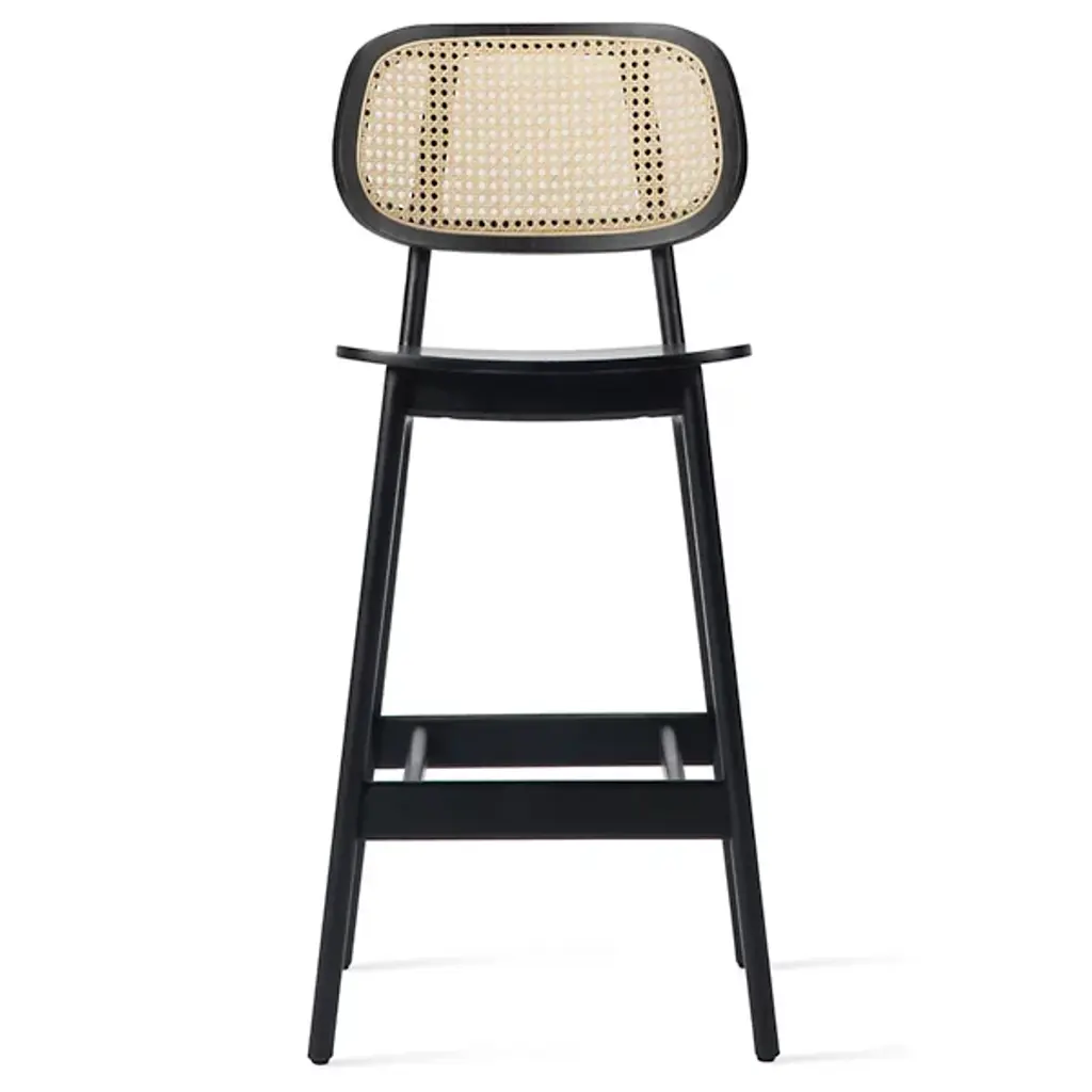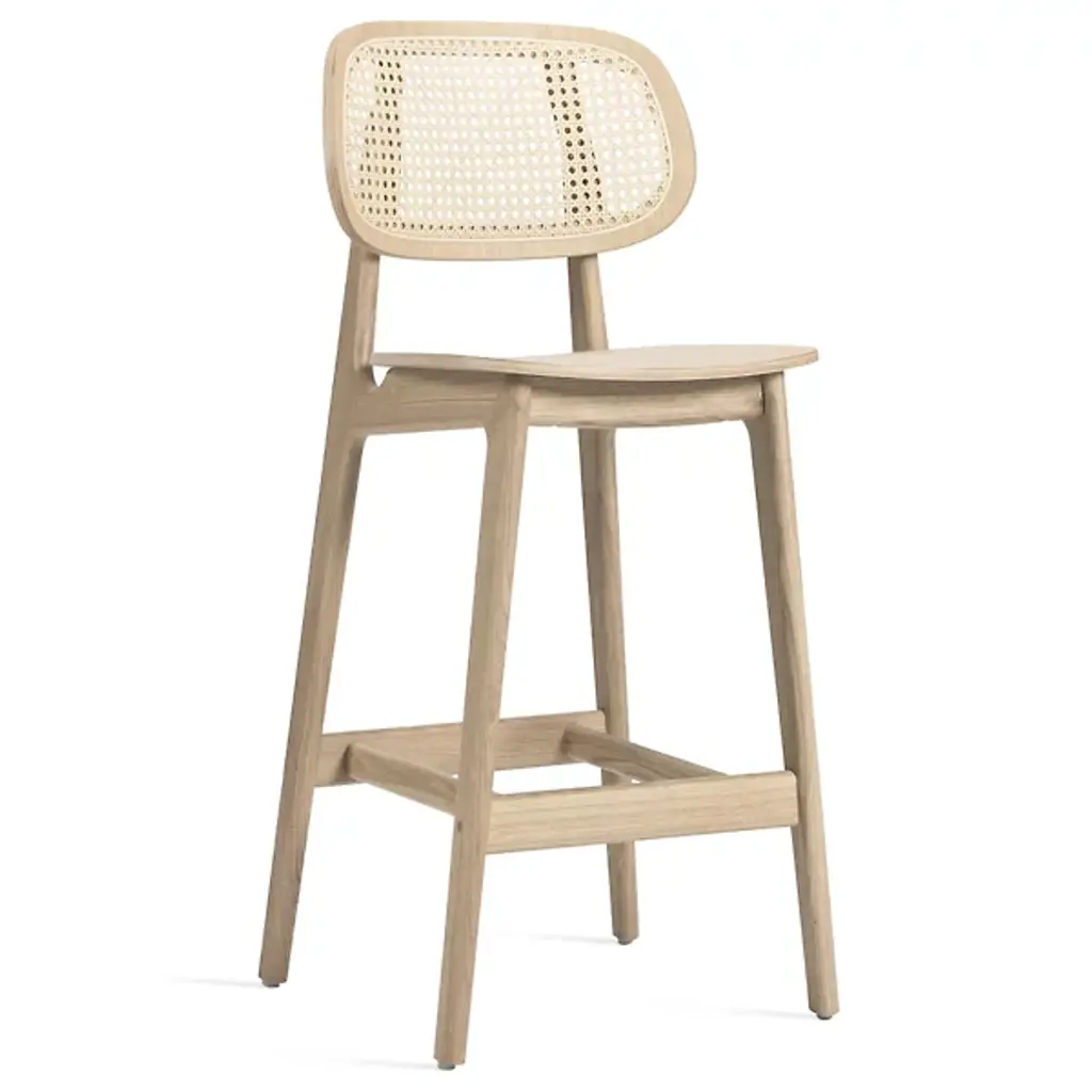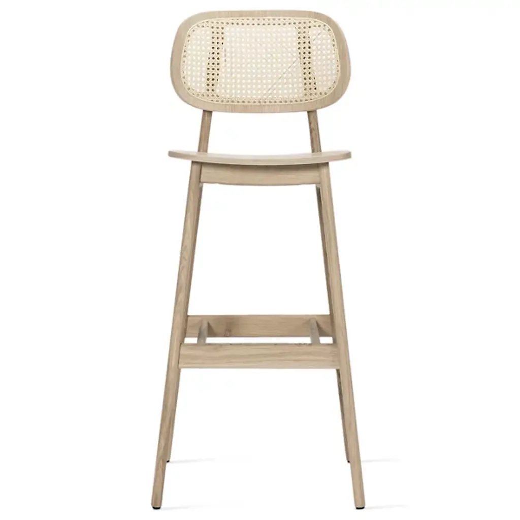 Make the most of your home bar possibilities with the Titus Barstool by Vincent Sheppard. A redefined version of the typical bar stool, this furniture piece adds a sharp look to any setting. Made with a solid oak frame and cane weave backing, this stool is both stable and comfortable. The rich oak veneer adds an extra layer of protection against pesky bumps and scratches. Enjoy your home bar setup with this stylish, wooden bar stool.