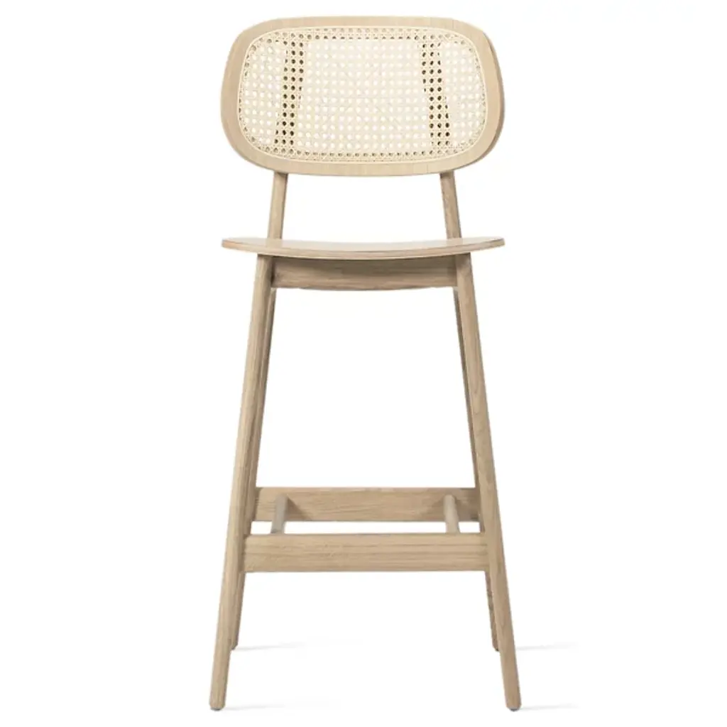 Make the most of your home bar possibilities with the Titus Barstool by Vincent Sheppard. A redefined version of the typical bar stool, this furniture piece adds a sharp look to any setting. Made with a solid oak frame and cane weave backing, this stool is both stable and comfortable. The rich oak veneer adds an extra layer of protection against pesky bumps and scratches. Enjoy your home bar setup with this stylish, wooden bar stool.