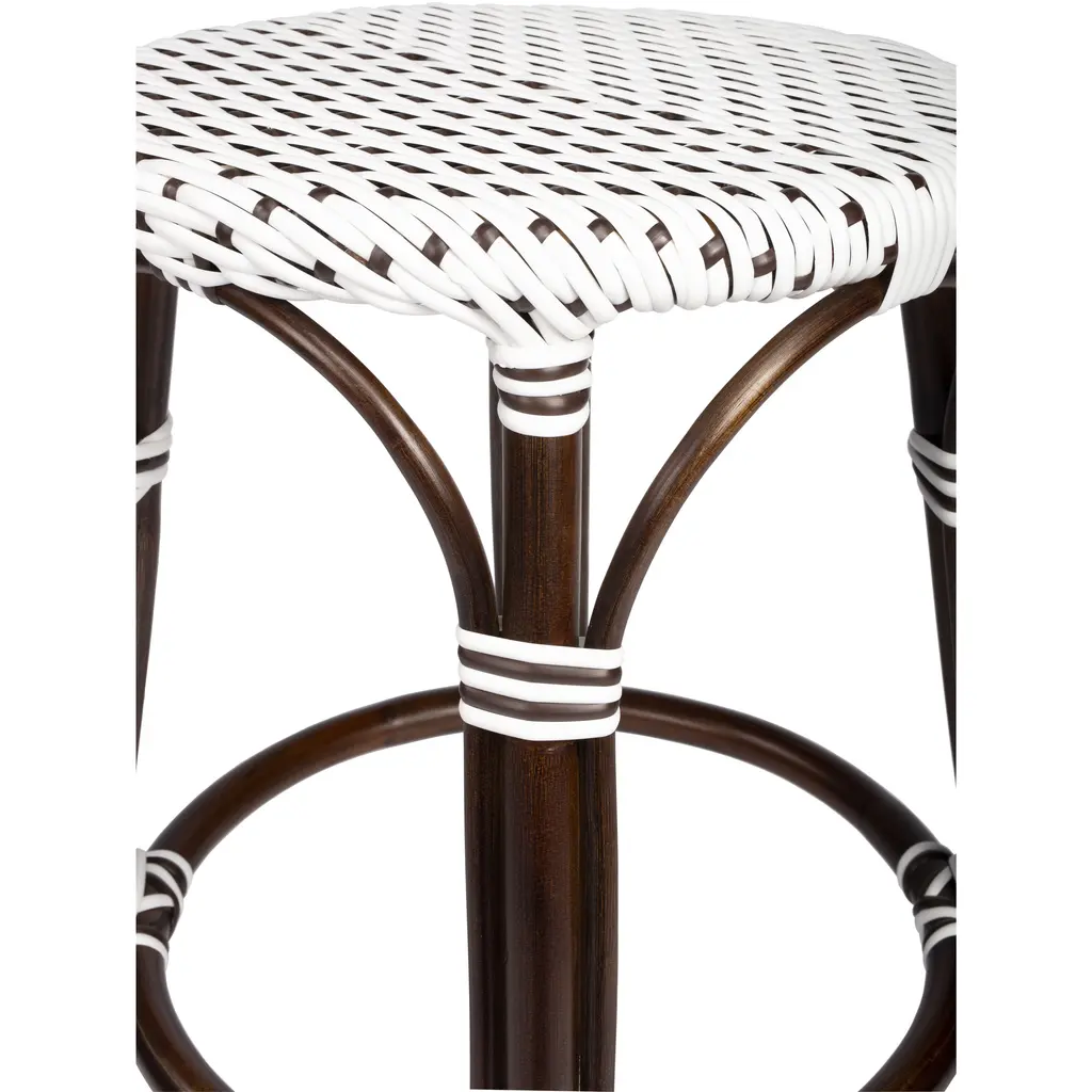 Butler Specialty Company Tobias Rattan Round 24" Counter Stool, White and Brown Dot