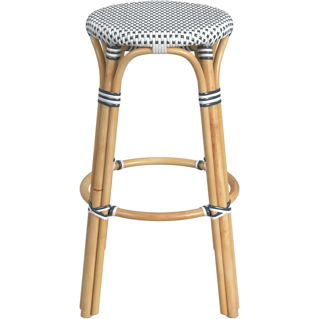 Butler Specialty Company Tobias Round Rattan 30" Bar Stool, White and Navy Dot