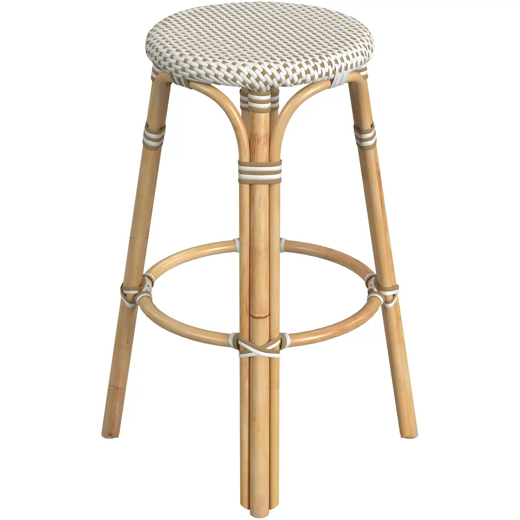 Butler Specialty Company Tobias Round Rattan 30" Bar Stool, White and Tan Dot