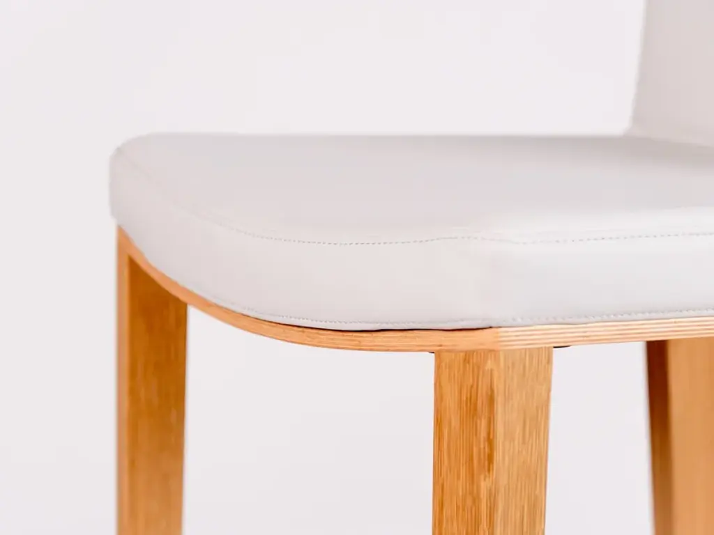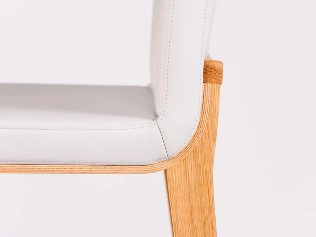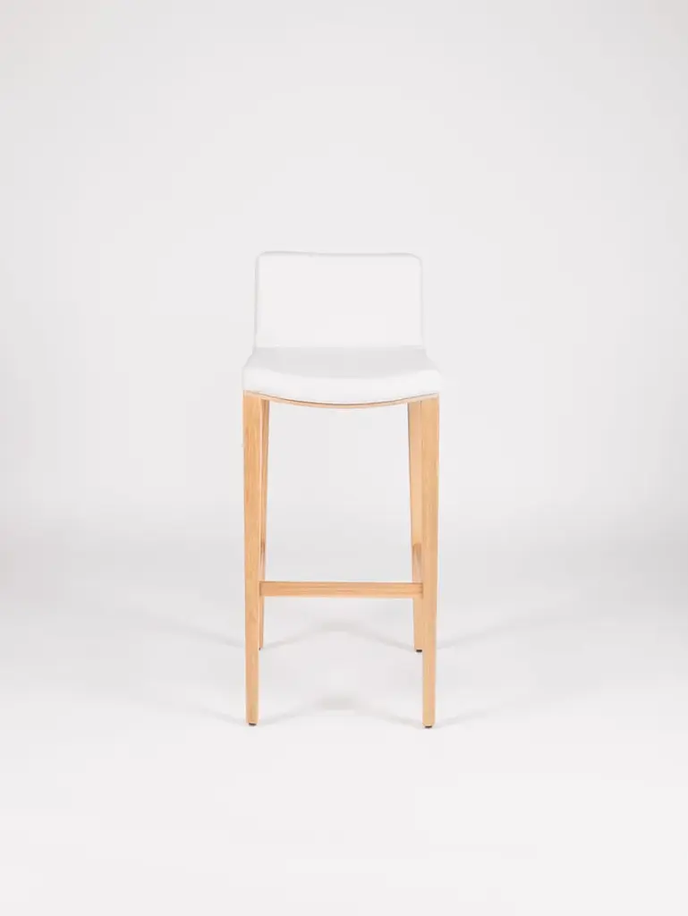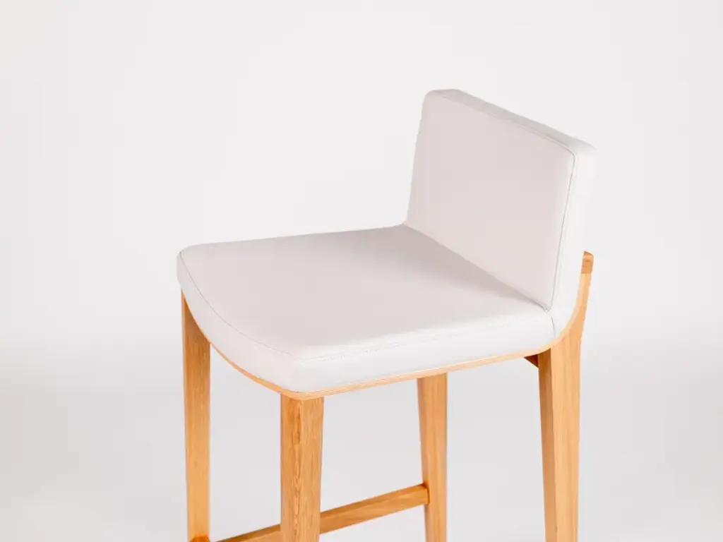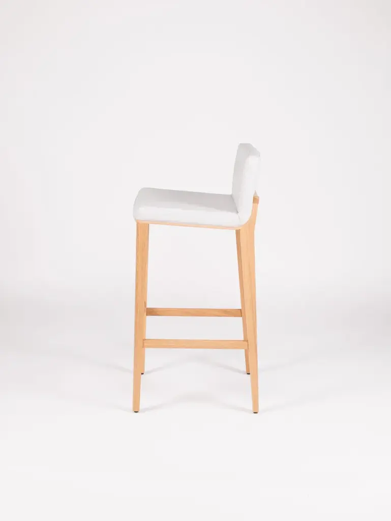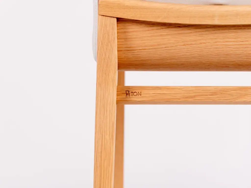Moritz è is a barstool.Seat and backrest upholstery: Fabric cat. A Grain (100% polyurethane 67% polyester- 33% cotton)Colour: Gris 01Structure finishing: Oak Colour: B39 Natural oiledGlides: Felt black