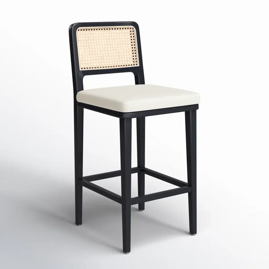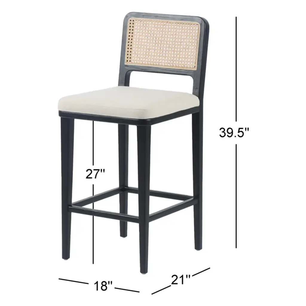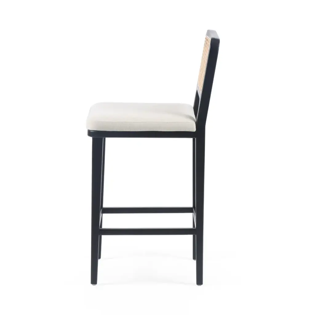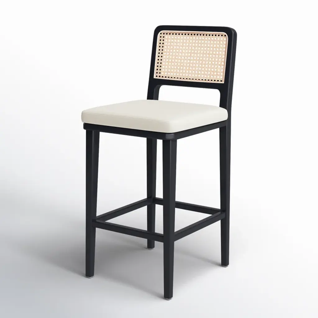 Modern materials refresh a mid-century look with solid ebony-brushed beechwood frames and a textural inlay of natural cane. Linen-like performance seating fabrics are specially created to withstand spills, stains, high traffic, and wear, ensuring long-term comfort and unmatched durability.