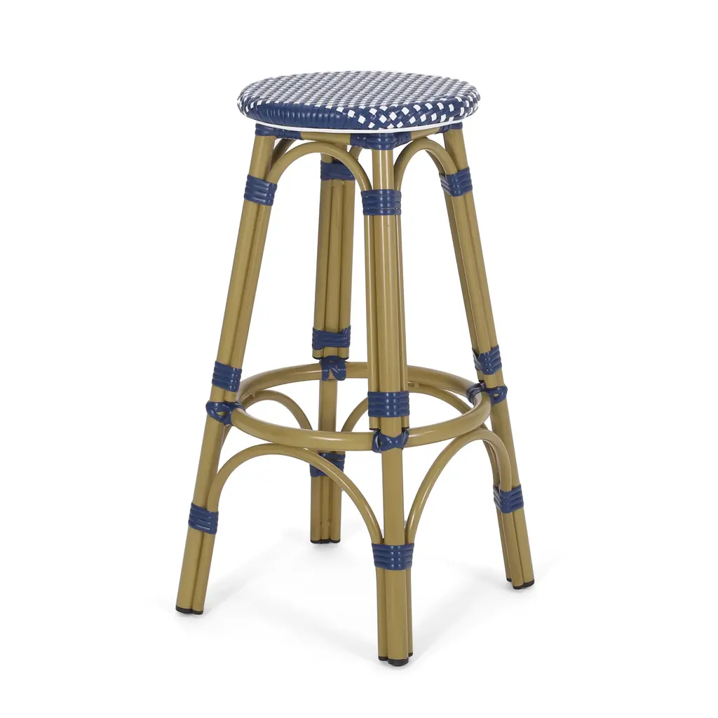 Trillium Outdoor Pe Rattan And Aluminum French Backless Bar Stool, Set Of 2 - Navy Blue