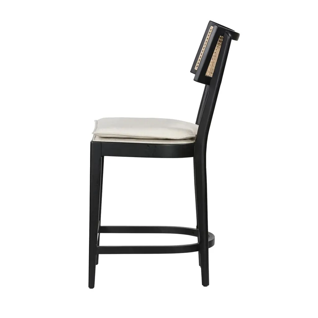 Mixed materials refresh retro styling in the Tristan Bar Stool. Nettlewood frames a textural inlay of natural cane, creating a beautifully cohesive look. The light, linen-blend seating is crafted from high-performance fabric, bringing modern sensibility to any counter. These performance fabrics are specially designed to withstand spills, stains, high traffic, and wear, ensuring long-term comfort and unmatched durability.