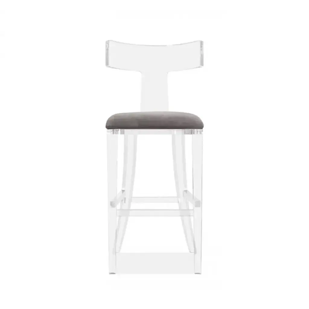 Pairing on-trend acrylic with a grey velvet seat, the Tristan Klismos Bar Stool delivers a fabulous take on a classic silhouette.