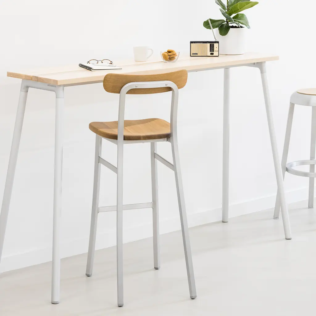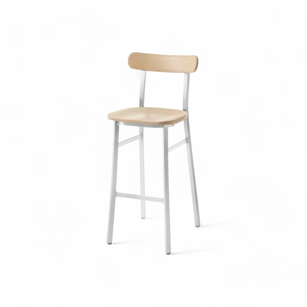 Bring purposeful design and eco-conscious craftsmanship to your home with the Utility Bar Stool by Emeco. Designed by Jasper Morrison, this bar stool combines Emeco’s signature square-section aluminum frame with solid wood for a timeless aesthetic. The lightweight yet durable frame is made from 80% recycled aluminum, ensuring both strength and sustainability. Perfect for kitchen islands, home bars, or commercial spaces, the Utility Bar Stool offers versatile style and comfort. Available in a range of finishes and wood options, it allows you to customize it to your décor. For outdoor settings like patios or terraces, the Accoya wood version provides durability and weather resistance. Handmade in Hanover, Pennsylvania, this stool is a lasting addition to any space, blending function with Emeco’s commitment to sustainability.
