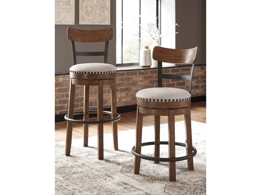 Valebeck Bar Height Upholstered Swivel Bar Stool With Contoured Back