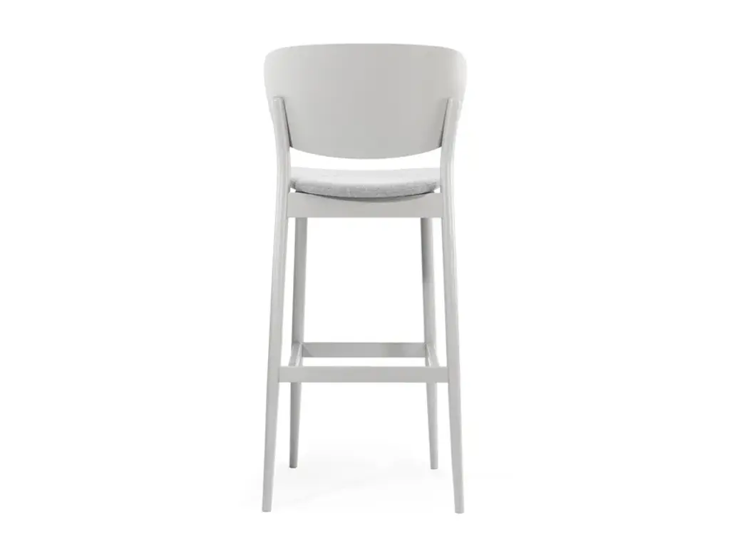 The forms and features of Valencia chair adapted into a barstool. Various colour-finish options change the character of the barstool and meet the needs of countless interiors. The two height variations allow the barstool to fit with classic bars as well as kitchen islands and countertops in private homes. The barstool is available non-upholstered, fully upholstered, and with an upholstered seat.
