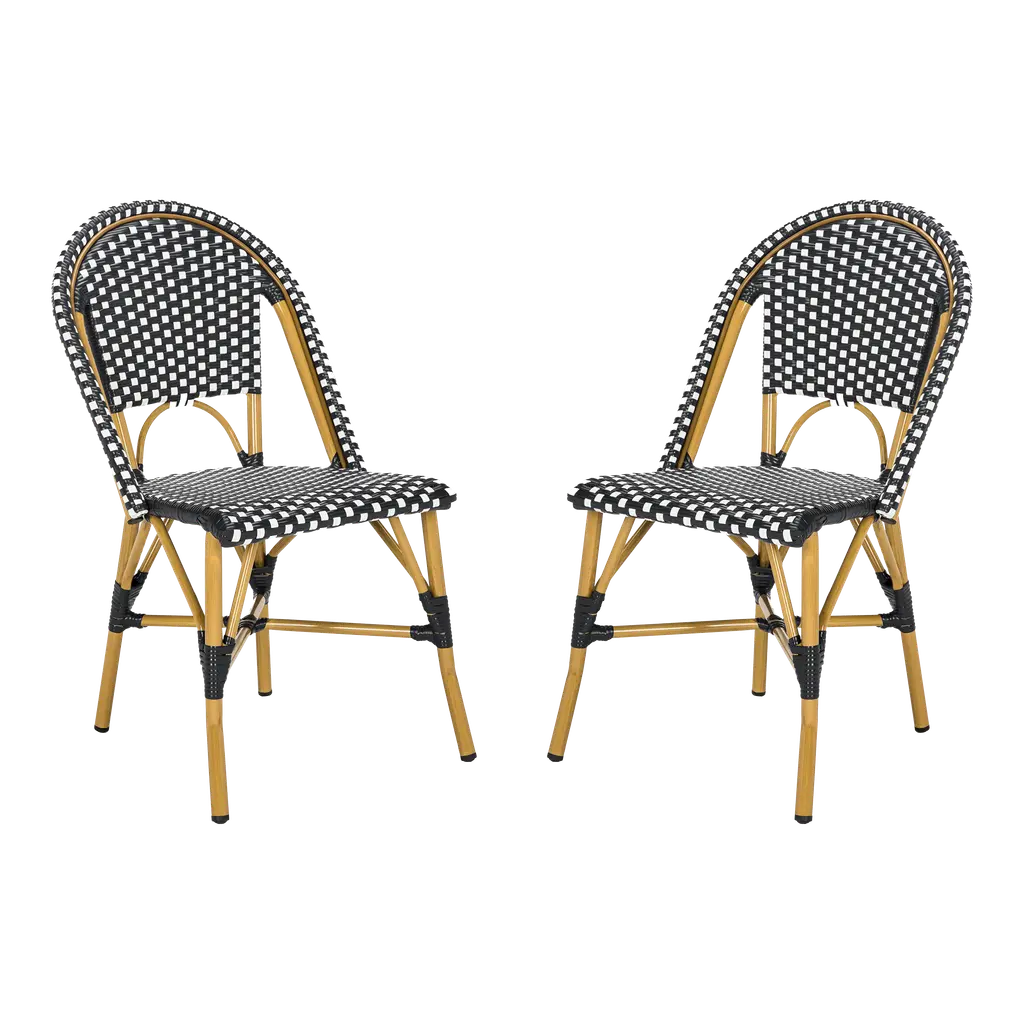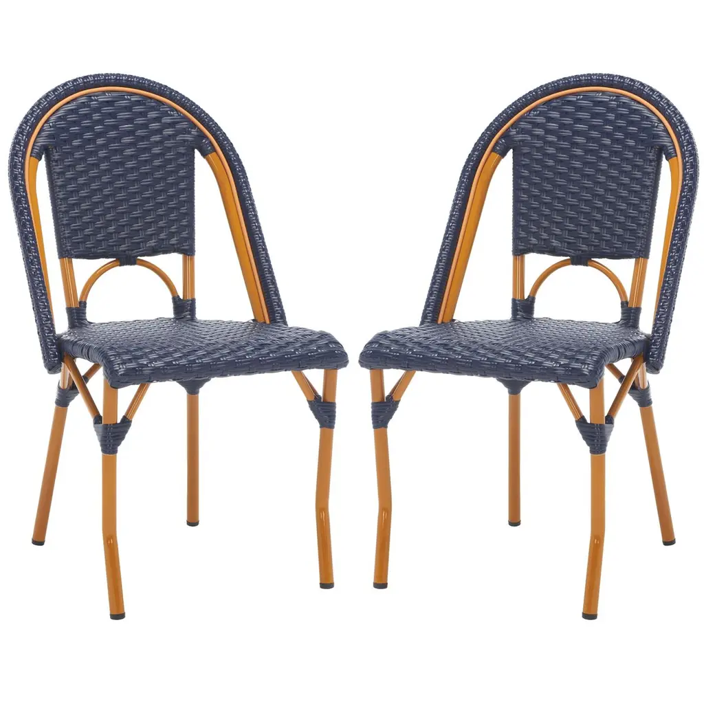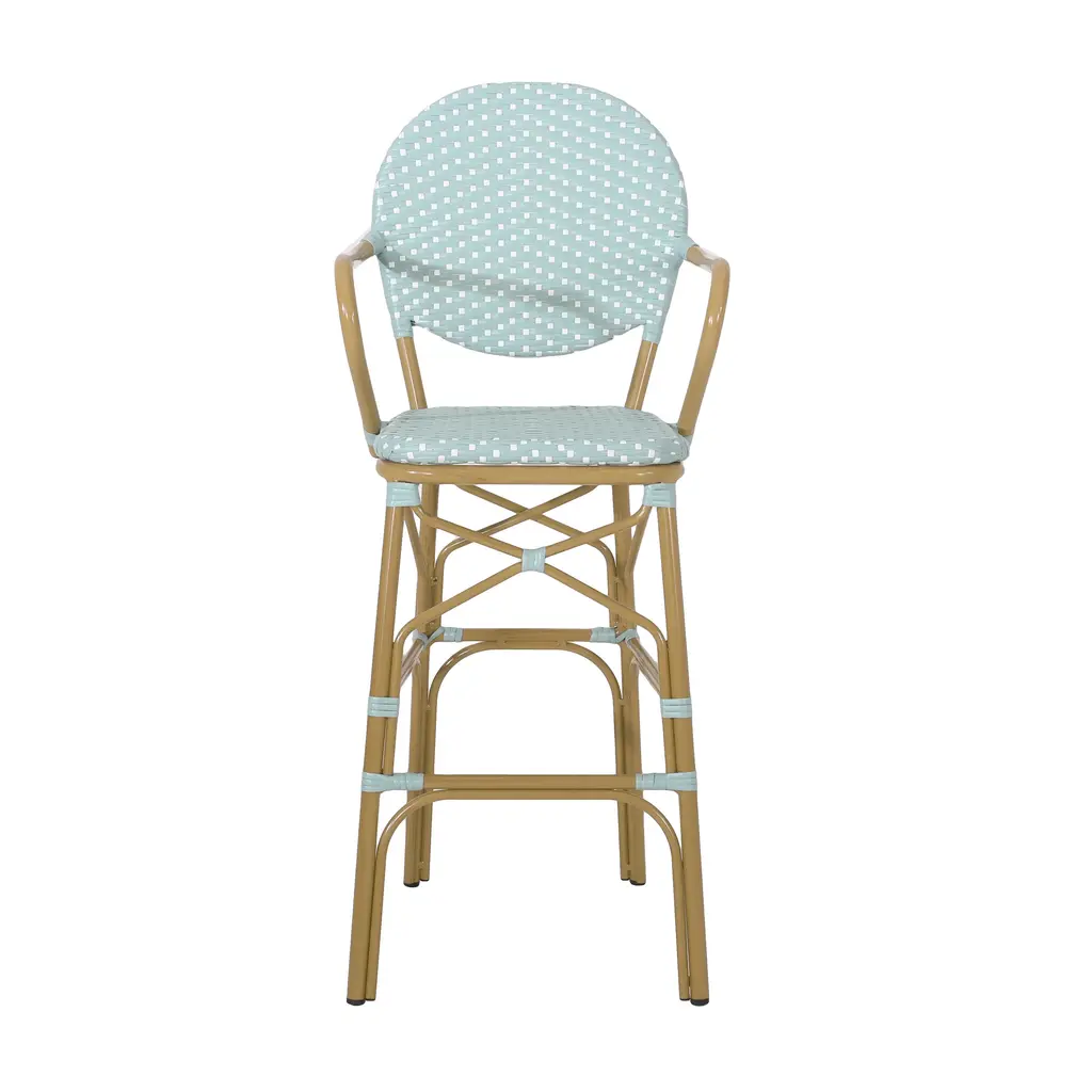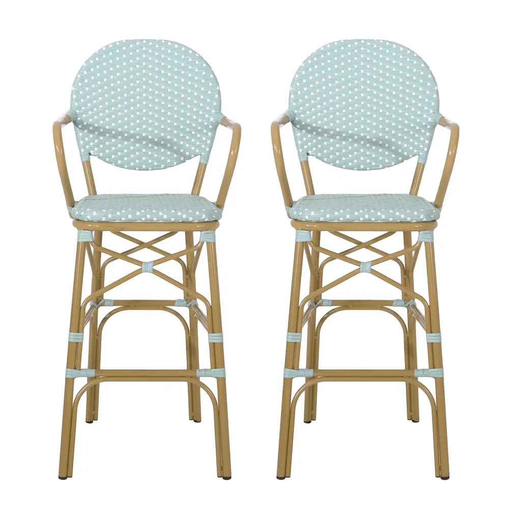 Bring the charm of a Parisian cafe to your outdoor space with this set of two bar stools. Designed with a classic curvaceous structure, wicker wrappings, and a bamboo-inspired finish, these stools offer a sophisticated yet relaxed aesthetic. The lightweight aluminum frame provides excellent stability while resisting rust for long-lasting durability. A woven polyethylene rattan finish enhances the design with texture and weather-resistant appeal. Perfect for patios, balconies, or garden bars, these stools blend timeless elegance with everyday functionality.