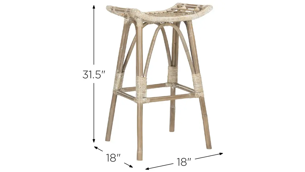 Inspired by daydreams of tropical breezes, this Vernice rattan bar stool transforms any interior into an exotic oasis. Crafted with natural mindi wood, its texture and white wash finish bring depth and dimension to any open plan dining room. An instant vacation.