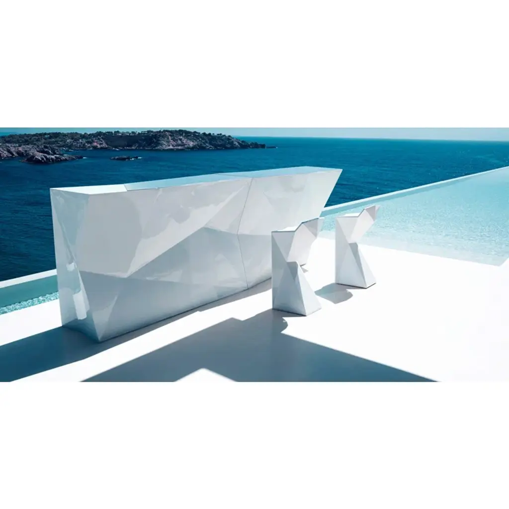 Vertex is a set of tables and chairs with triangular planes which join dynamically together to create comfortable forms suitable for dining or meeting rooms, banquet or lecture halls, and other casual needs. Vertex looks as if it was chiseled from a single block of material, what remains is structural yet, beautiful. The vertex collection was created to integrate a more conceptual architectural piece into their space, to give it a more sophisticated touch.