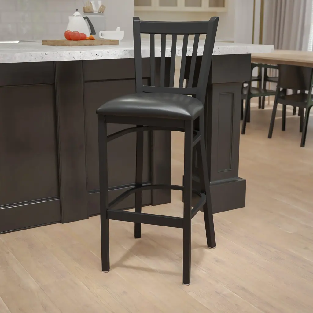 Create a first-rate dining experience by offering your patrons great food, service and attractive furnishings. The metal barstool is a popular choice for furnishing restaurants, pool halls, lounges, bars and other high traffic establishments. This tall bar stool is easy to clean, which is an important aspect when it comes to a business. This bar stool chair was designed to withstand the daily rigors in the hospitality industry, The seat is designed to keep guests comfortable. The frame is stabilized using two welded support bars, which includes a footrest. The floor glides help protect your floors and ensure smooth gliding. The simple, lightweight design makes this metal barstool an ideal seating solution for residential or commercial grade use.