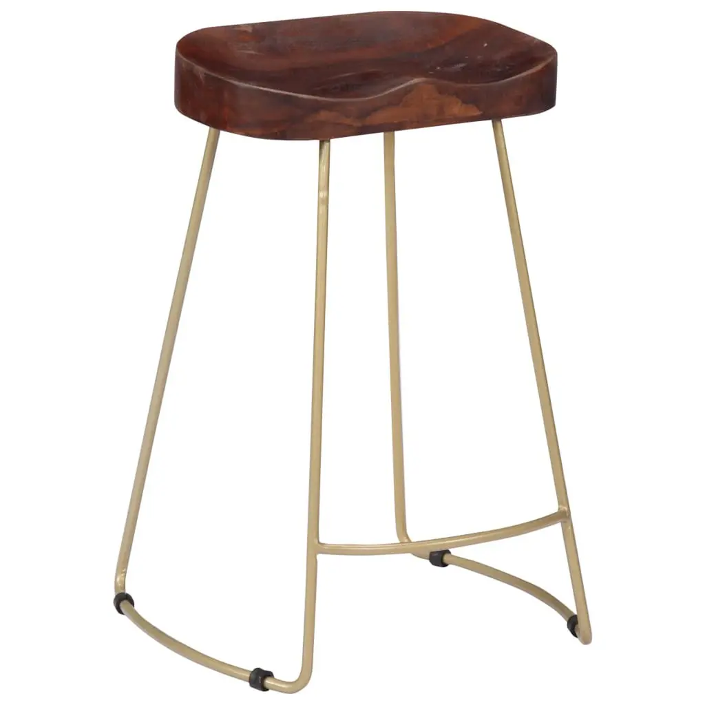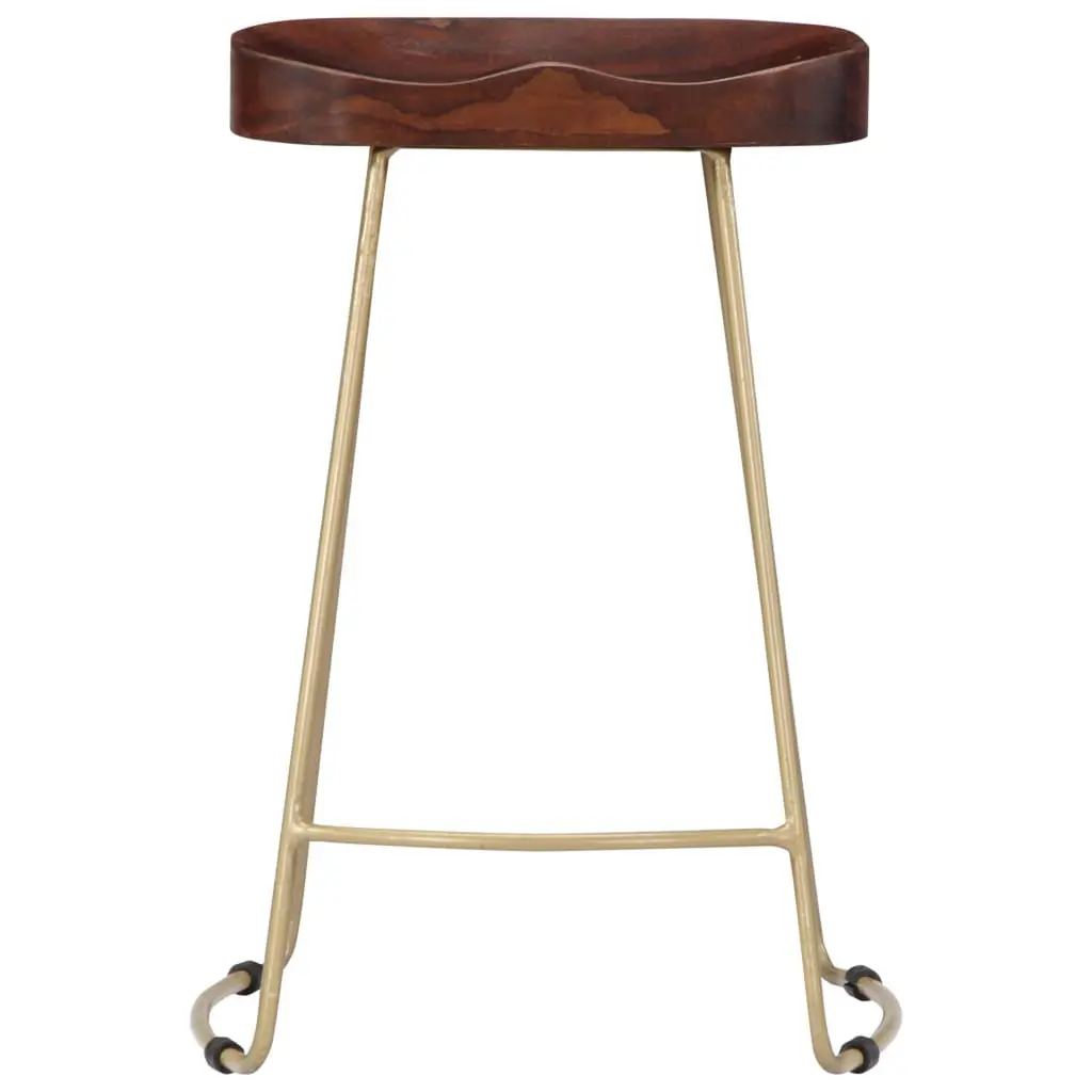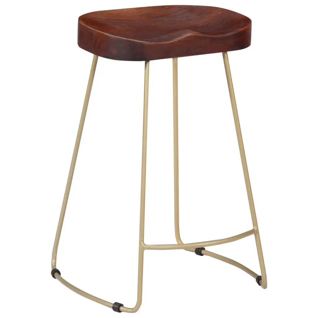 This 2-Piece Gavin Bar Stool Set is a brilliant example of industrial design, mixing the natural beauty of solid mango wood with sturdy brass powder-coated iron. Not only do they look good, but they’re also comfy and built to last. They’re perfect for any dining room, kitchen, or home bar, whether you're having a casual get-together or a more formal do. Robust Construction: Built tough from solid mango wood, these stools are made to last. The hardwood surface is ideal for day-to-day wear.Brass-Coated Iron Frame: The powder-coated finish adds a classy touch and stands up to use. A little upkeep keeps these stools looking fresh.Unique Handmade Finish: Each stool is a little work of art, thanks to its handmade nature. Enjoy the character that natural wood variations bring.Comfortable Height: With a height of 24.4 in, these stools work with most standard bar and counter setups, making them comfy for any occasion.Versatile Styling: Their sleek look means they blend in nicely with various styles, from modern to rustic, so they fit right in anywhere.