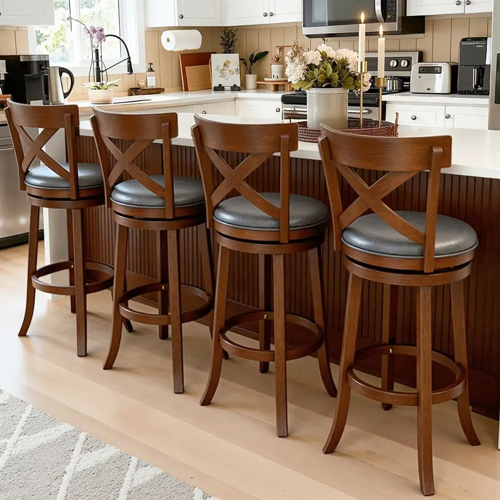 This solid reclaimed wood bar stool mixes function with style, adding a warm touch to any dining area, kitchen, or home bar. Its industrial design, with a sturdy metal frame and a crafted wooden seat, is perfect for adults wanting comfort and looks – great for casual meals or entertaining. Unique Handmade Appearance: Every bar stool is made from reclaimed wood, so no two are the same, giving your space a special touch. The varied wood grains show off great craftsmanship, letting you appreciate the artistry every time you get together with family or friends. Durable Metal Frame: Built with a strong powder-coated steel frame, this stool is made to last. Supports up to 242.5 lbs. for peace of mind while you sit, so it’s perfect for everyone. Industrial Aesthetic: The sleek design combines reclaimed wood and sturdy metal, adding a trendy urban feel to any room. Great for modern kitchens, dining areas, or rustic pubs. Comfortable Footrest: The footrest not only makes it comfier but also lets you sit back and savor your meals or drinks. It’s perfect for long dinners or relaxed weekend brunches. Versatile Usage: These stools are meant for indoors and will fit right in with your dining room, kitchen, or bar area. The height is just right for standard counters, making them a great addition to your home decor.