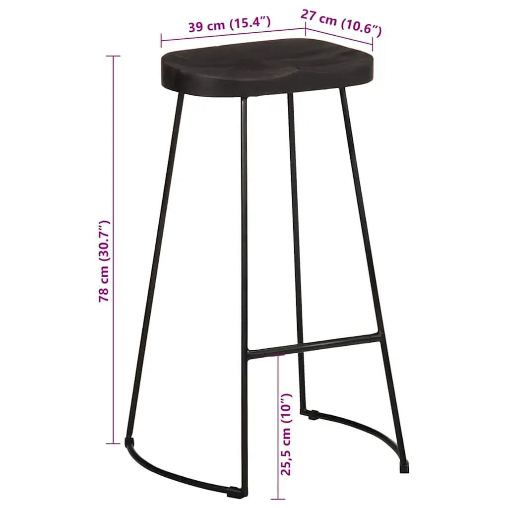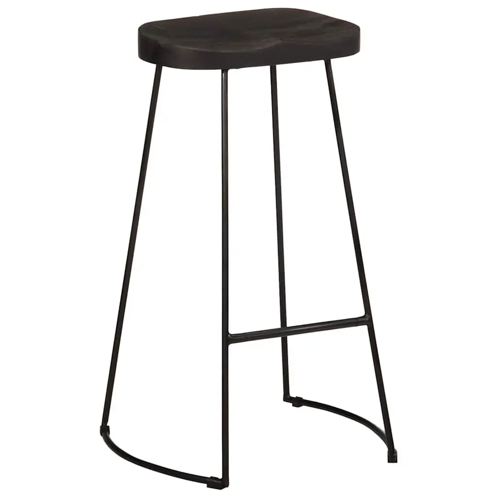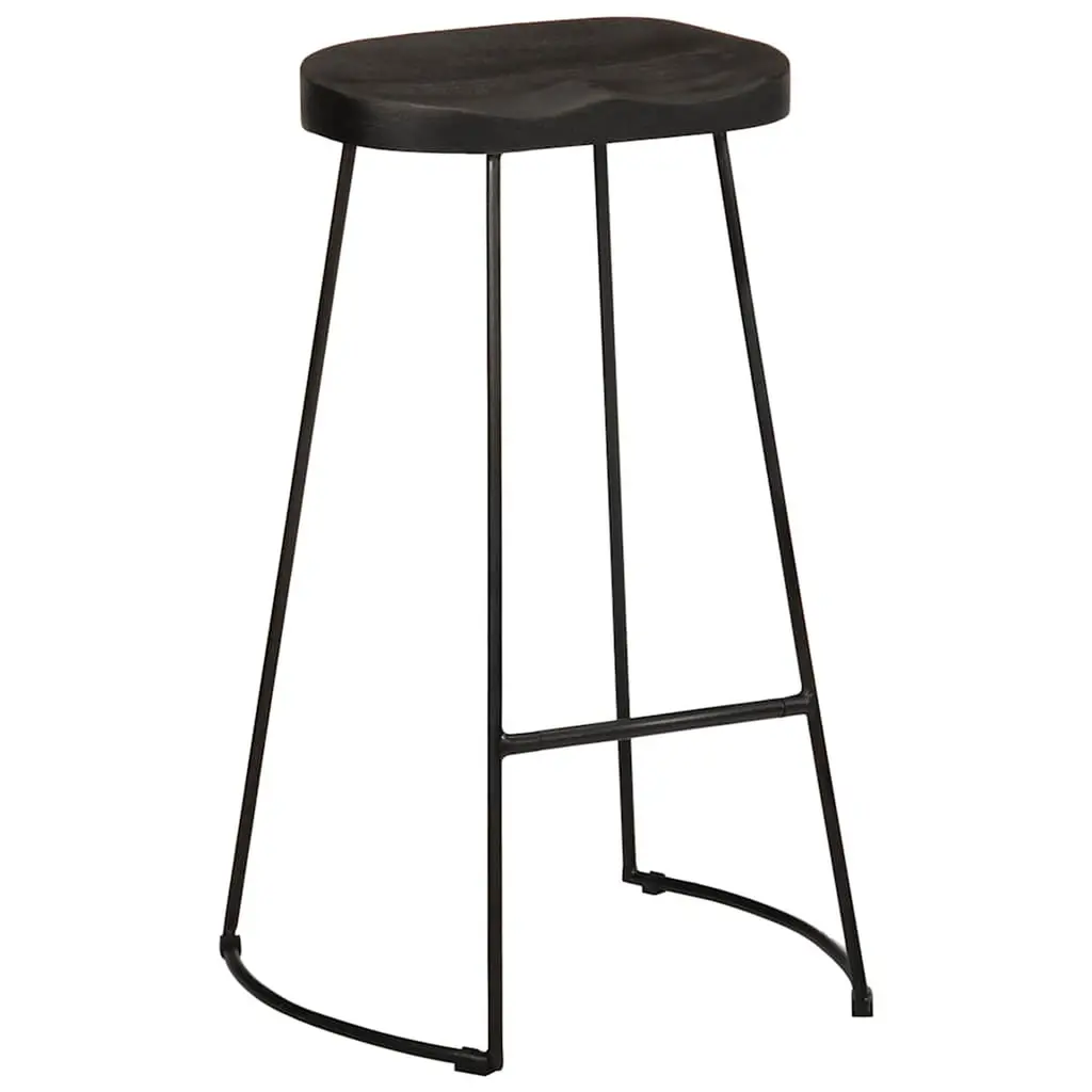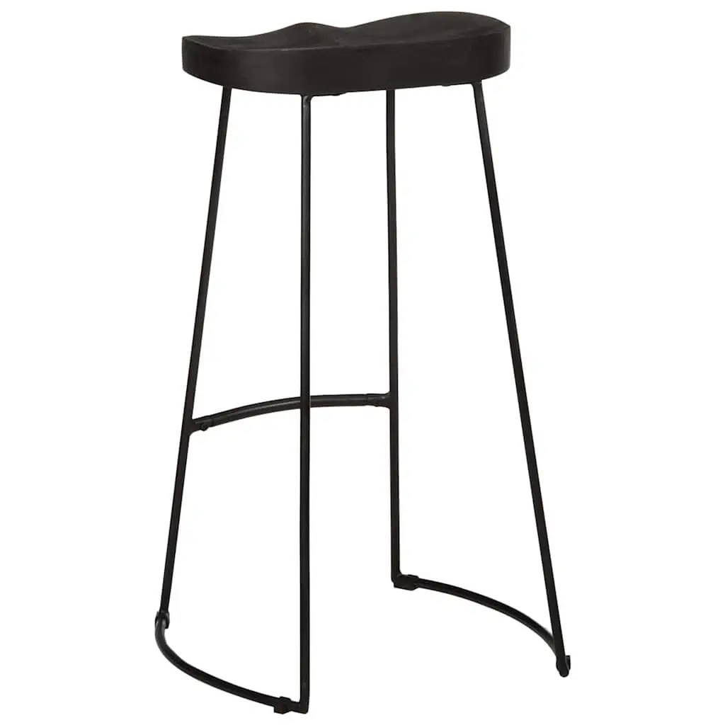 Vidaxl Bar Stool Set Of 2 Black Solid Mango Wood, Iron Standard