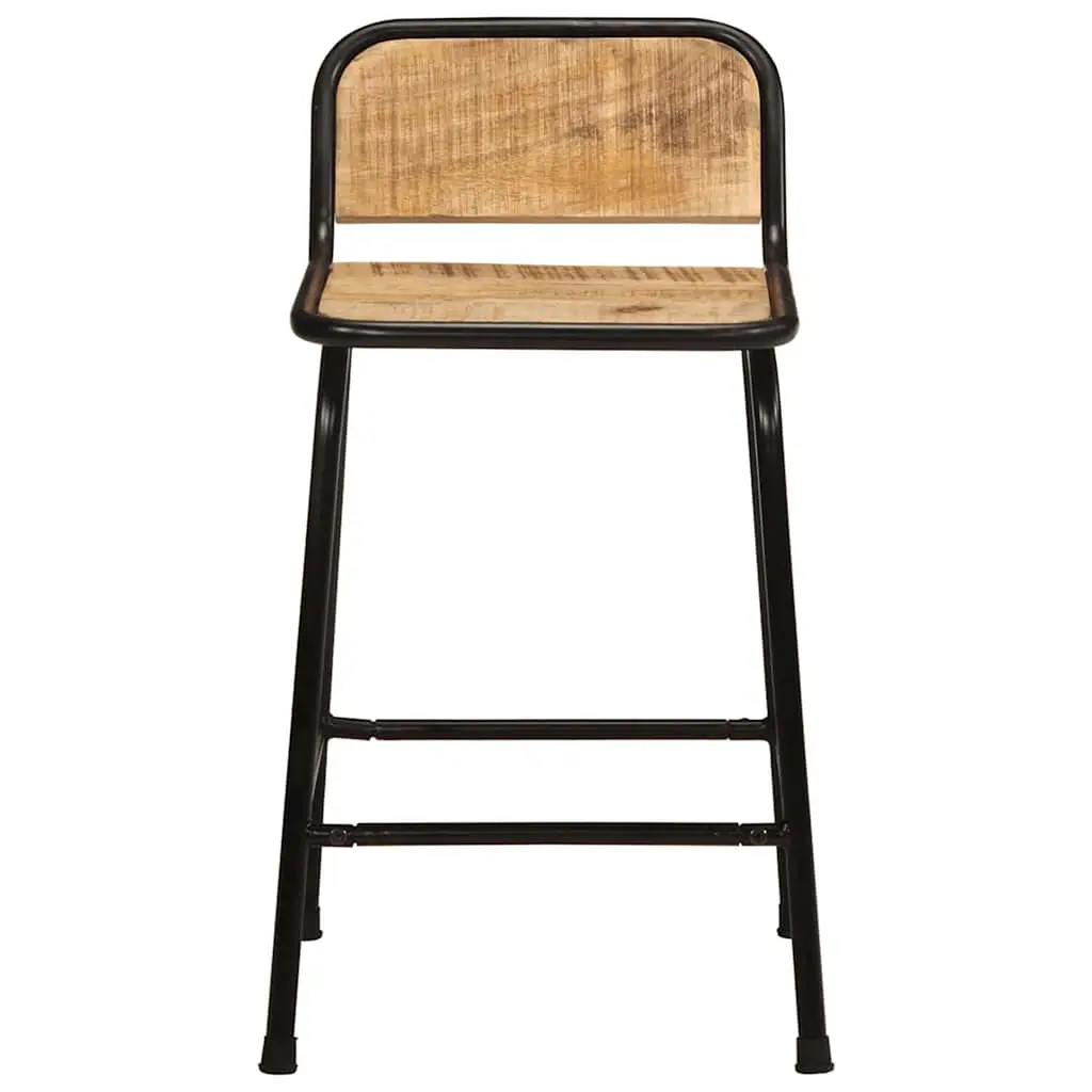 Vidaxl Bar Stool Set Of 2 Brown And Black Solid Rough Mango Wood, Iron