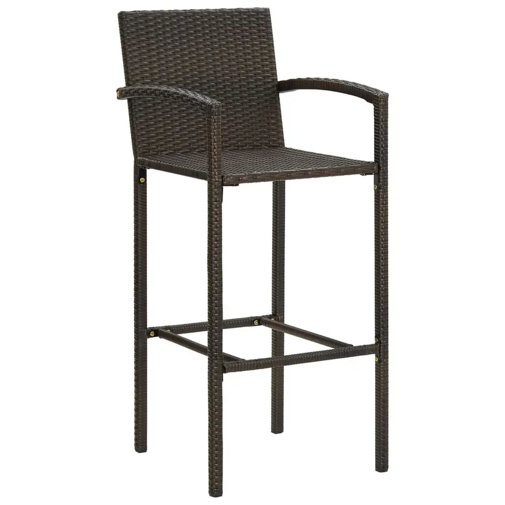 Vidaxl Bar Stool Set Of 2 Brown Pe Rattan, Powder-Coated Steel Large