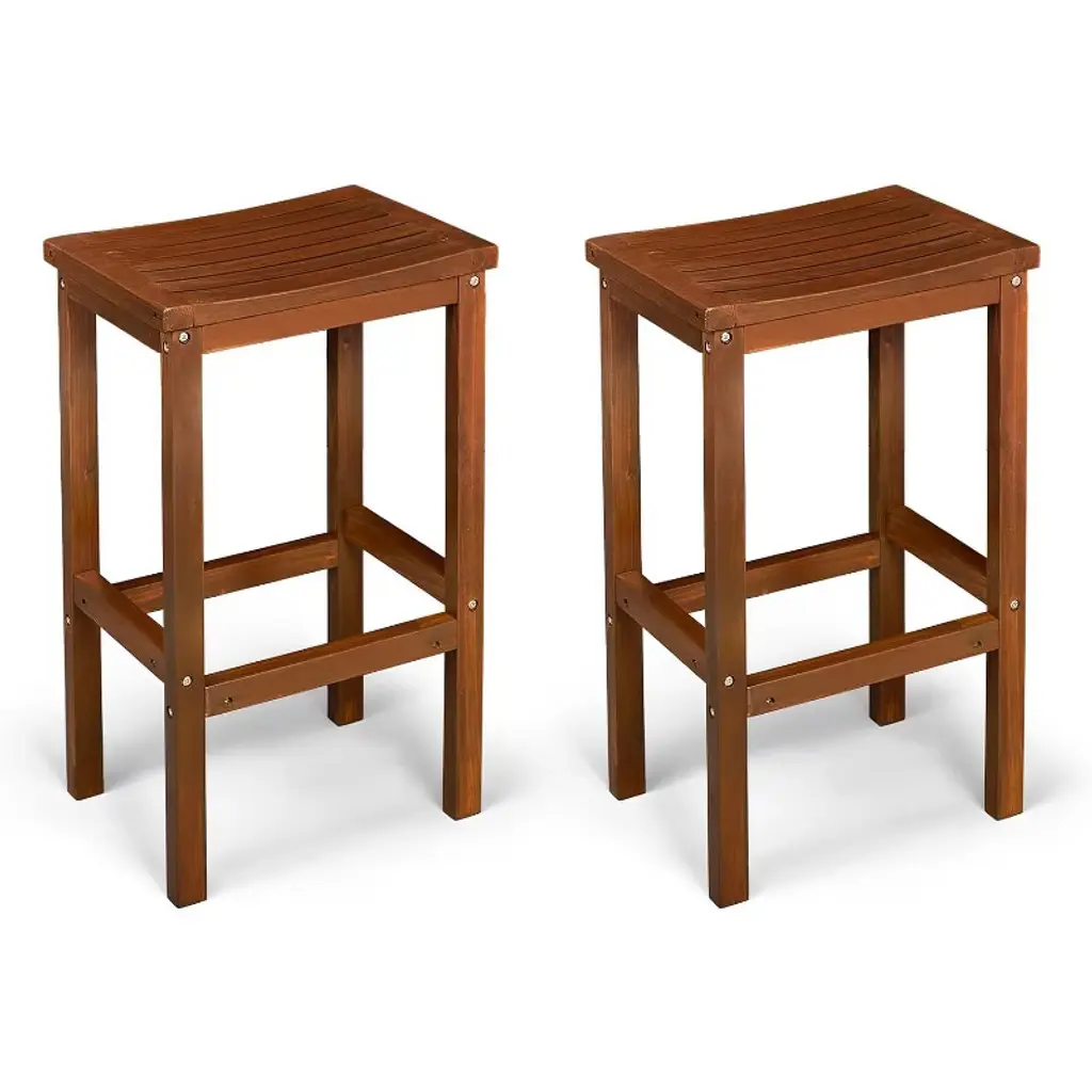 This set of 4 rustic bar stools combines elegance and practicality, made from solid acacia wood known for its natural charm and sturdiness. Perfect for both indoors and outdoors, they come in a lovely brown shade that adds warmth to any dining or entertaining area, offering a classic look that fits in with various styles. Premium Quality: Each stool is made from solid acacia wood, so it's built to last and tough against wear. Elegant Finish: The oiled finish boosts the wood's natural colors and keeps it clean with next to no effort. Versatile Use: Great for gardens, patios, or balconies – these stools will level up your outdoor and indoor events. Stable Footrest: Designed with a footrest, these stools make sitting comfy and give you extra support. Space-Saving: With a sleek square design, they fit neatly in smaller spaces without losing their style or strength.