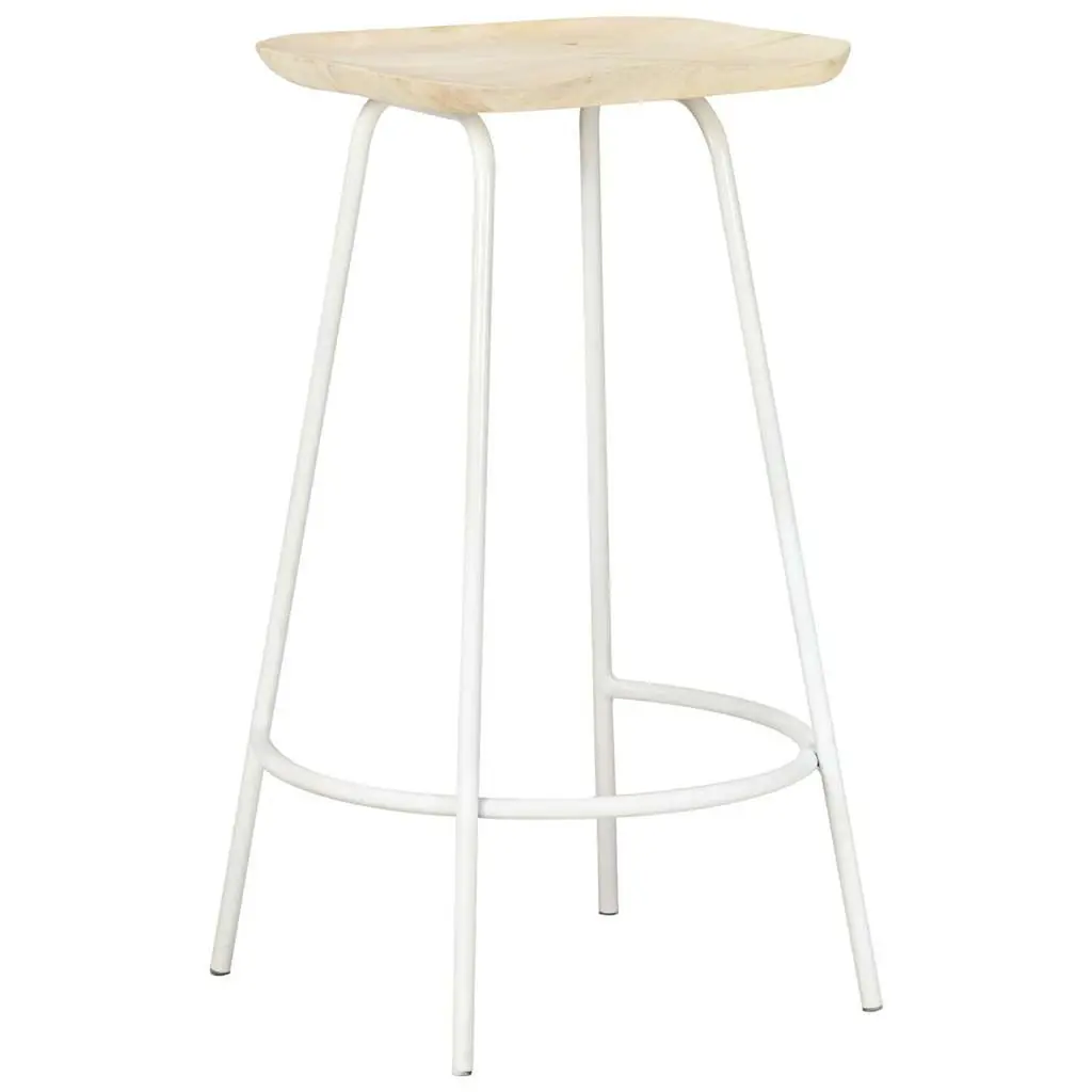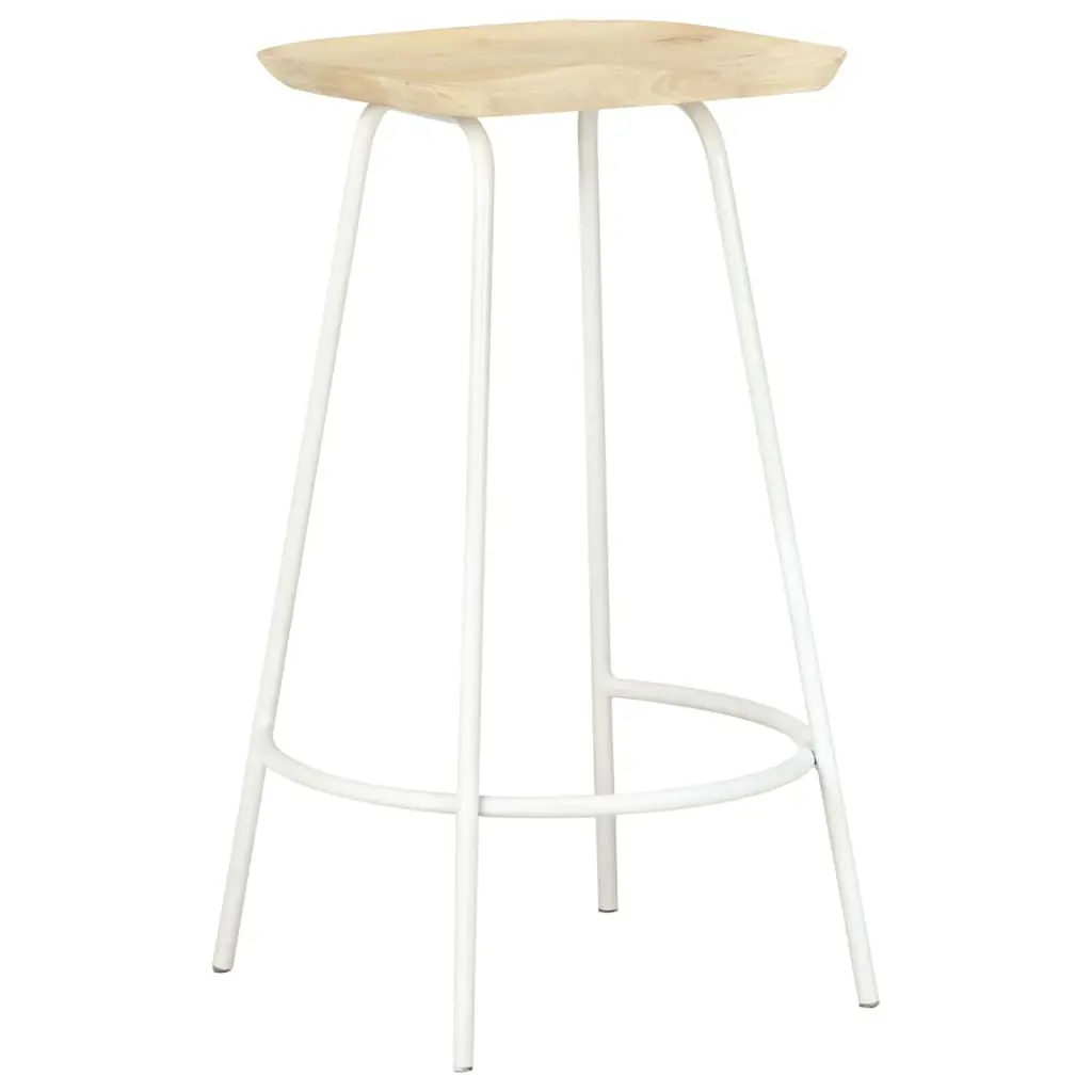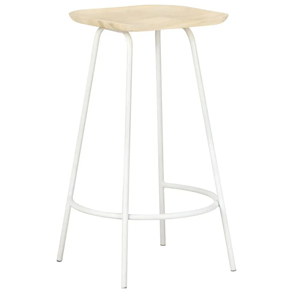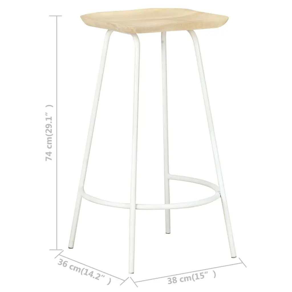 This 4-piece bar stool set combines style and practicality, making it a great choice for any home bar or dining area. With a sleek design that focuses on both comfort and looks, these stools have a solid mango wood seat paired with a crisp white powder-coated iron frame, perfect for modern and industrial decor. The understated charm of the bleached wood finish contrasting with the smooth metal texture enhances the overall visual vibe, creating a warm and inviting space in your kitchen or dining room. Spacious Seating: Each bar stool has a wider seat of 14.2 in for the comfort you deserve while enjoying meals or drinks.Height-Optimized: The 29.1 in height is just right for standard bar or counter tables.Sturdy Build: Made to last, the solid mango wood seat with a strong iron frame ensures durability.Elegant Look: The bleached wood finish adds sophistication that easily matches your decor.Easy to Clean: Just wipe with a soft cloth and warm water to keep your stools looking fresh.