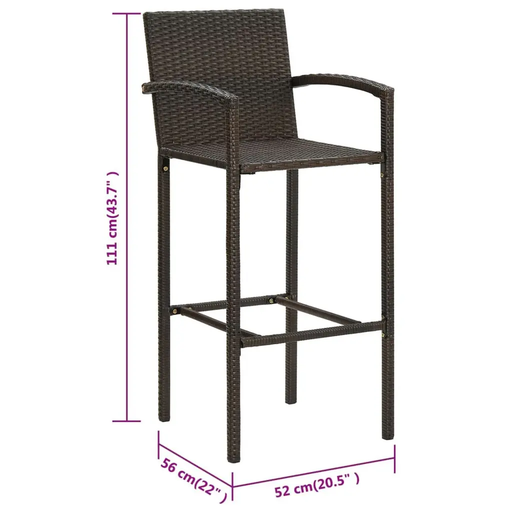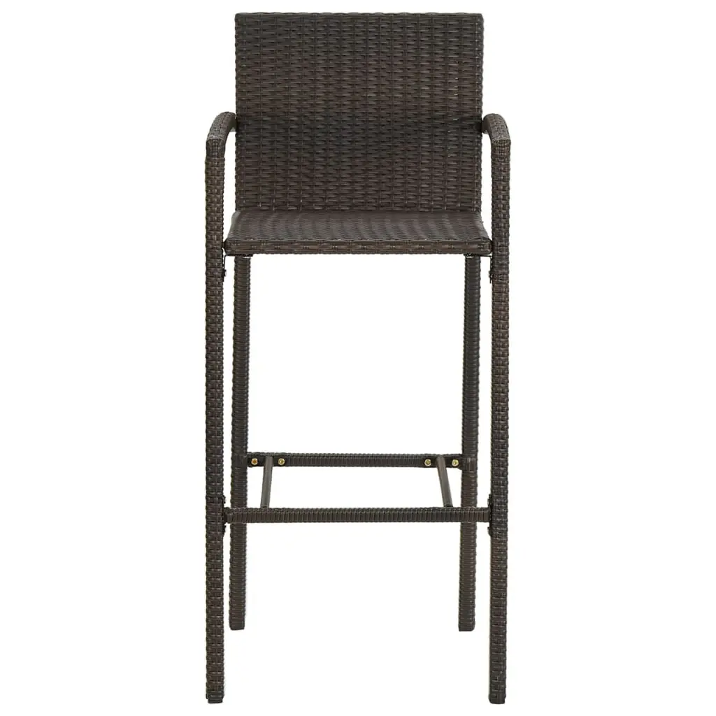 This bar stool set has four chic pieces made from sturdy synthetic rattan, adding a stylish touch to your indoor and outdoor spots. The rich brown color suits various decor styles, creating a welcoming vibe for dining or hanging out, perfect for kitchens, dining areas, or garden bars. Versatile Design: These stools work well for both kitchen counters and outdoor bars. Their lightweight build makes moving them a breeze, so you can set them up anywhere.Built for Comfort: Each stool has a backrest, armrests, and a footrest for a comfy seating experience, so you can kick back during meals or chat with friends.Robust Build: Made from synthetic rattan and a powder-coated steel frame, these stools can handle the weather. They're UV resistant, so they’ll last outside.Easy Maintenance: Cleaning is simple; just wipe them with a cloth after use to keep them looking fresh.Space-Saving: With a compact size, these stools are great for smaller areas, letting you enjoy stylish seating without taking up too much room.