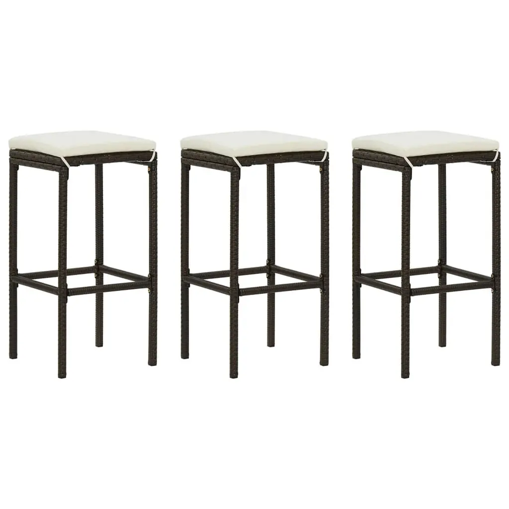 This set of bar stools includes four stylish seats that balance modern looks with comfy functionality, making it perfect for any dining room or home bar. With a rich brown color and soft cream cushions, these stools bring warmth and enhance the vibe of any space – whether you're throwing a casual get-together or just having a quiet meal at home. Stylish Design: The sleek lines and minimalistic vibe of these bar stools make them ideal for any decor. Their eye-catching appearance works well in both indoor and outdoor spots, adding a touch of class wherever they go. Durable Materials: Made from premium poly rattan and steel, these stools can handle everyday use and weather elements. Their high-quality materials ensure they stay looking good for years, making them a smart pick for seating. Comfortable Seating: Each stool has soft, tufted cushions that not only look good but also feel great, perfect for long sitting sessions. These cushions make it easy to kick back and enjoy leisurely meals or drinks. Easy Maintenance: With cushion covers that come off easily, cleaning these stools is straightforward; just unzip and pop them in the wash to keep them fresh. This makes them a practical choice for busy homes or regular entertaining. Versatility: Great for a home bar, dining room, or patio, these stools are super flexible to fit different environments. Their tailored height makes them a good match for high tables or counters.