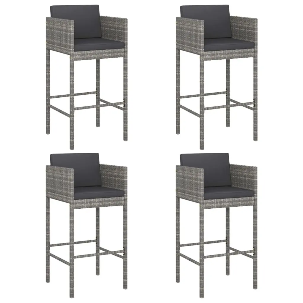 Vidaxl Bar Stool Set Of 4 Grey Pe Rattan, Powder-Coated Steel